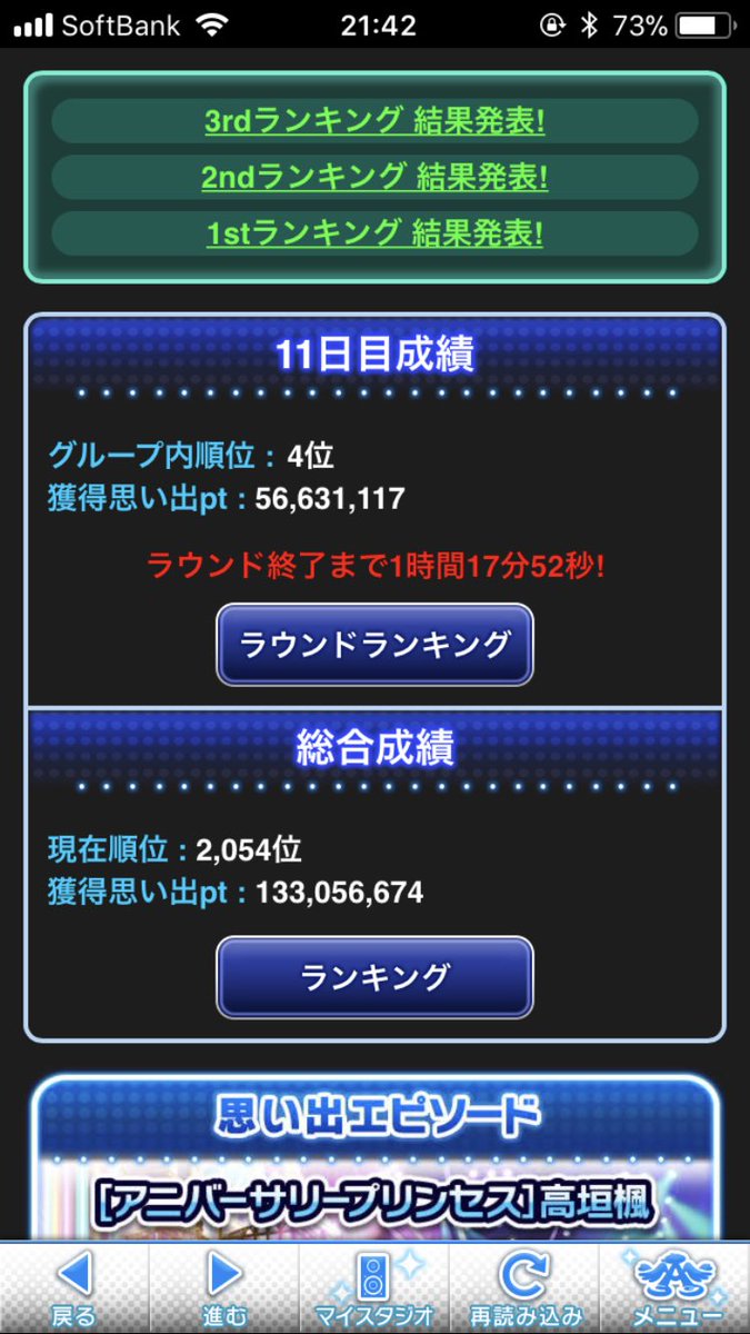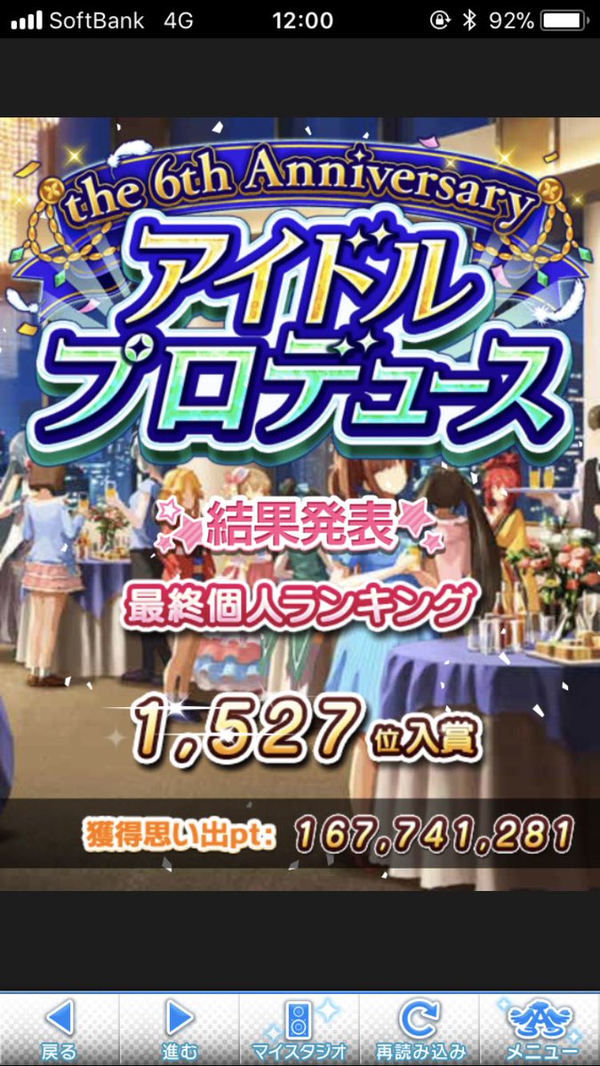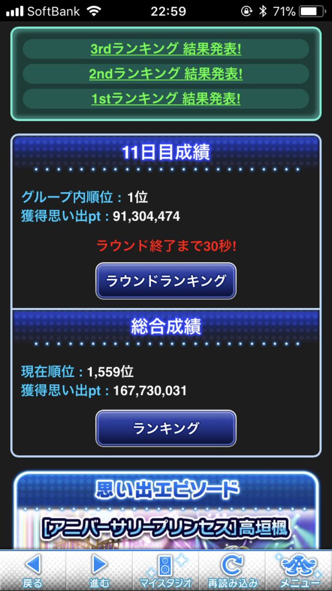 今回は課金アイテムよりもスタ走りの比重が大きく、特に最終ラウンドほどスタドリを飲んだことは過去に例がないんですが、走ってる間はニコ生で毎年見てる生主のアニバ実況だったり、ニコ動の実況動画(EDF5)、昔のニコマスシリーズを視聴したりと、おかげで全然退屈せず楽しく走れました(夜中に爆笑したのは流石に近所迷惑だったかも(汗))