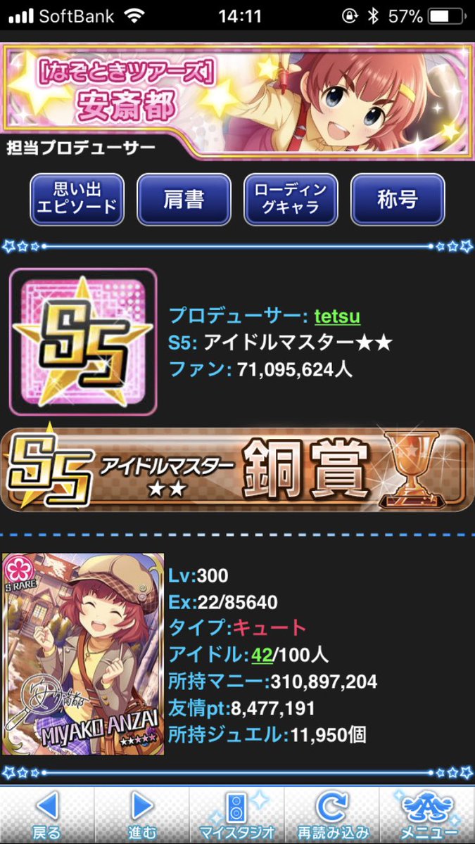LVUP回数から概算すると、消費したスタミナは約40万なので、スタドリ本数だと900本くらいになりますかね