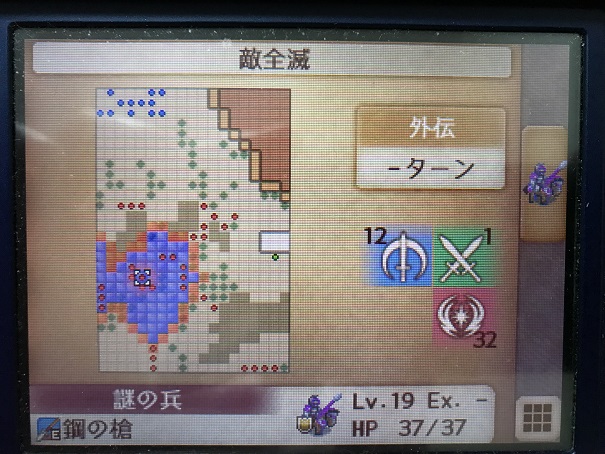 この章から敵が全員上級兵種になり敵の強さが底上げされるが、外伝マップの敵はまだ上級兵種ではなく、子世代もチャイルドプルフを持参しないため、軍資金を節約するならここをクリアしてから外伝を発生させる必要がある
