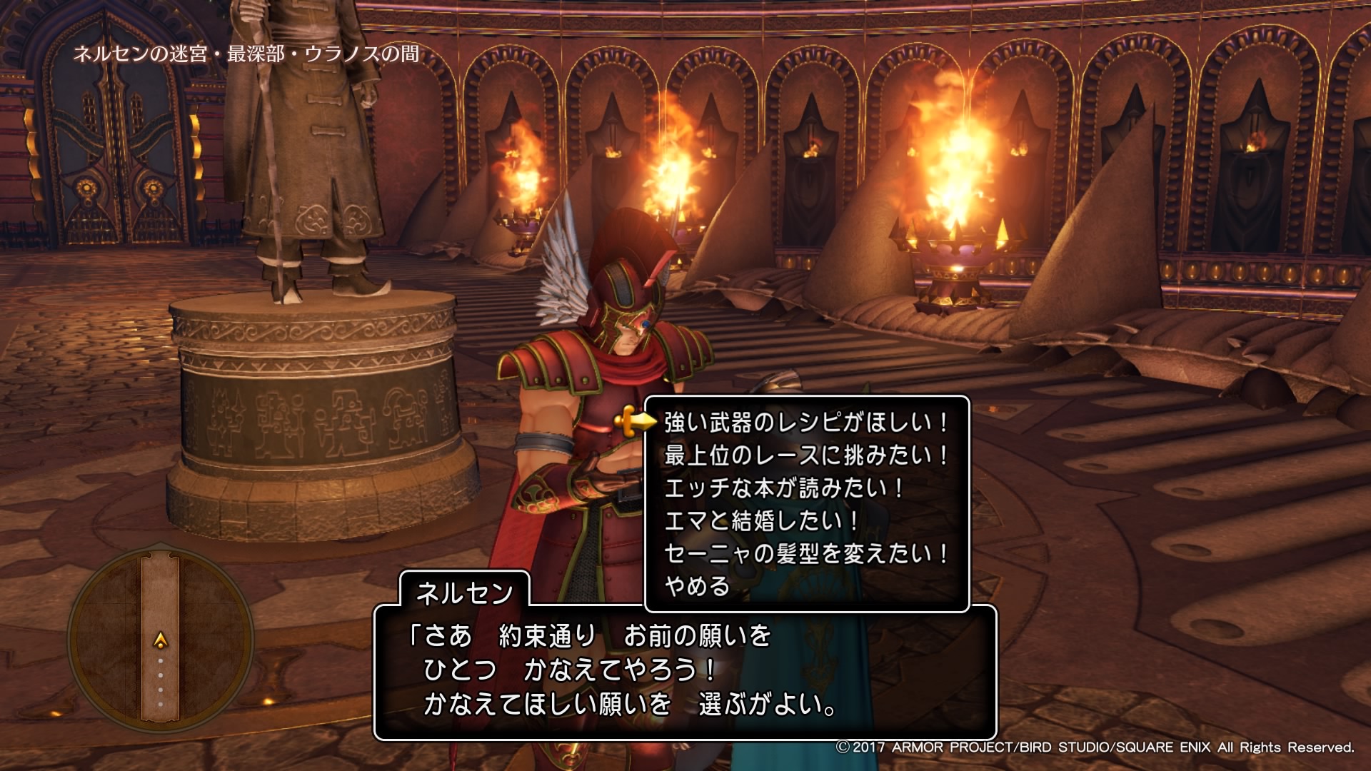 最初のエリアである導師の試練、その最深部にいるボスを倒すと願いを一つかなえてくれるということで画像のような選択肢が表示されます