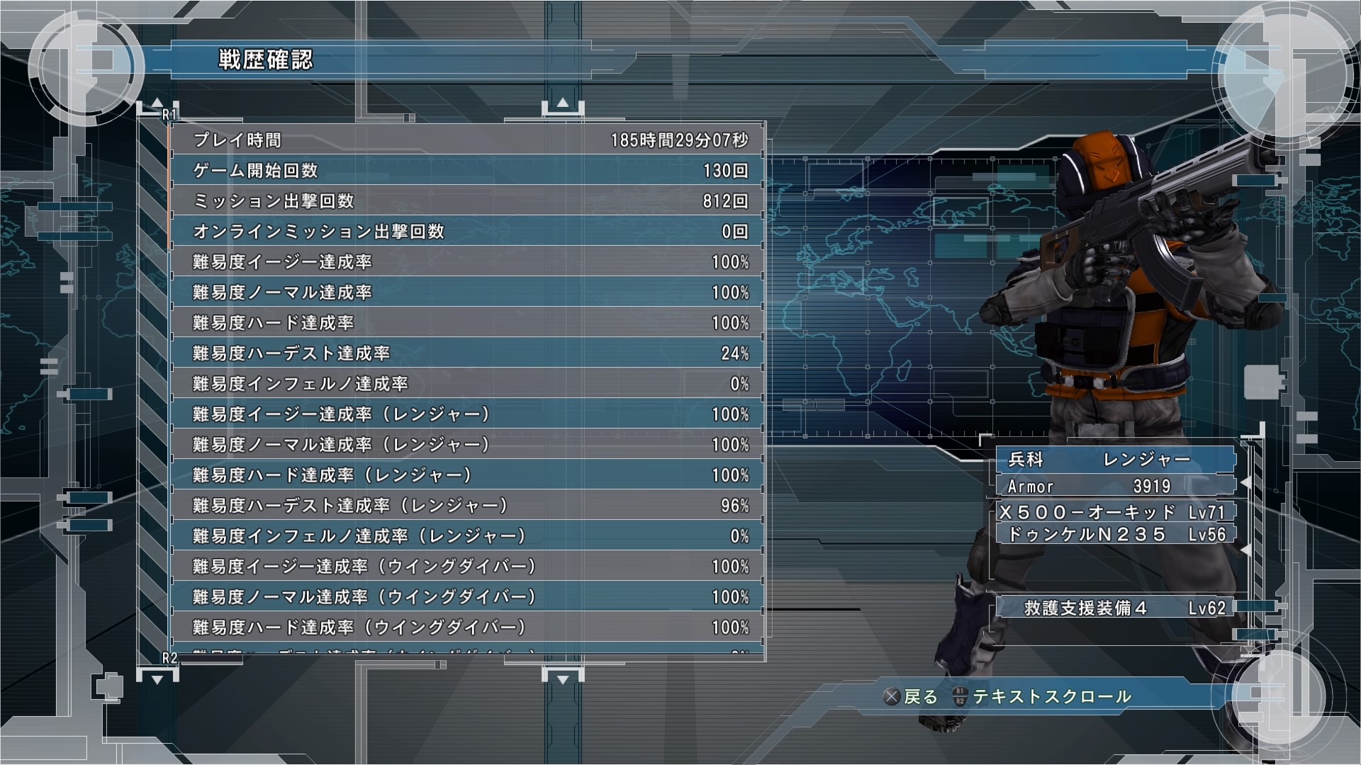 エアレイダーを最後に使ったため武器やアーマーが一番成長していたのも一つの要因でしたが、HARDでは全兵科で最速でクリアできました