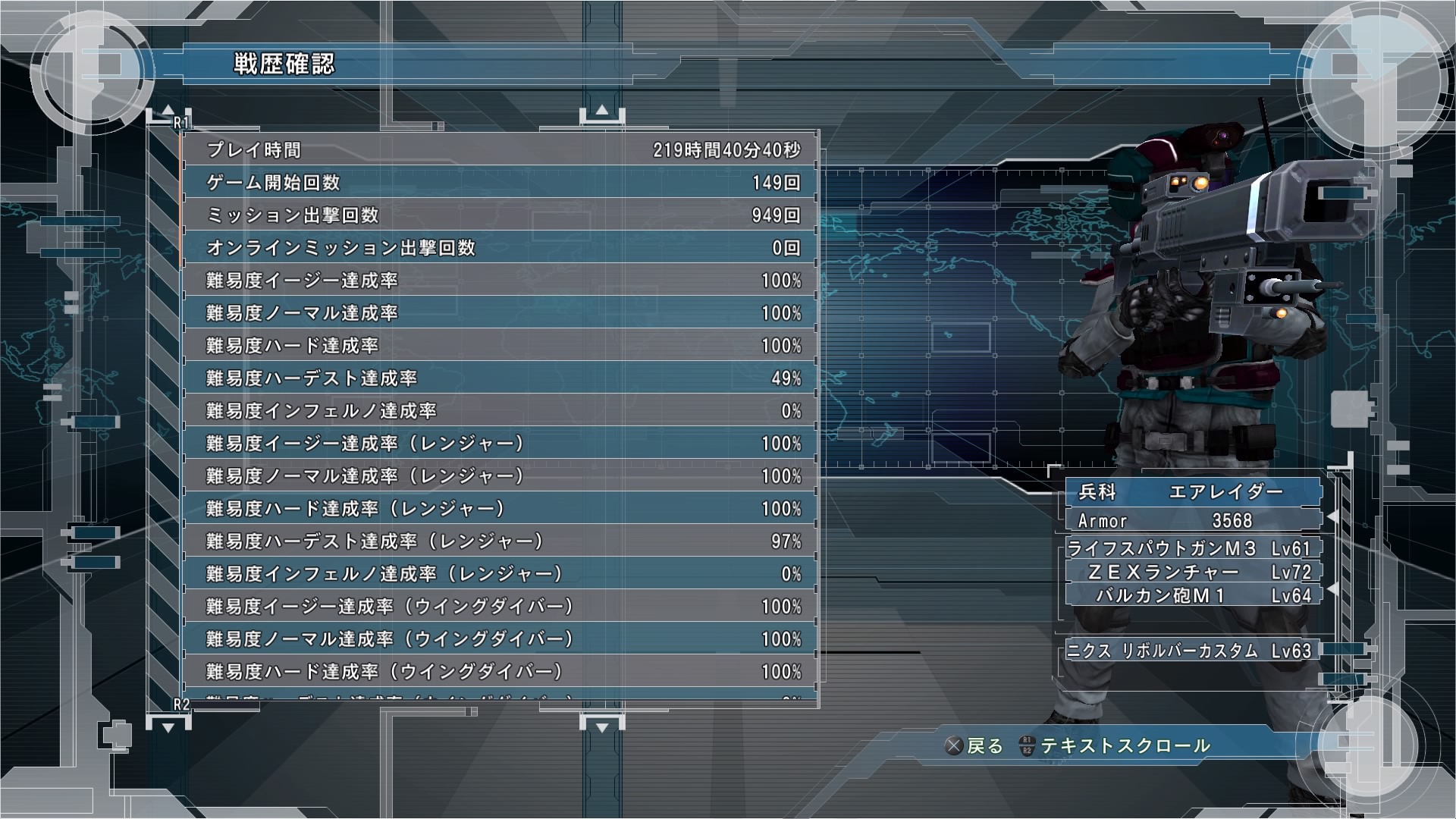 前作よりもミッションの難易度は遥かに上がっているにもかかわらずそれ以上の戦績を残せたというのは、やはりプレイヤーサイドの装備強化とシステム改良のたまものですかね