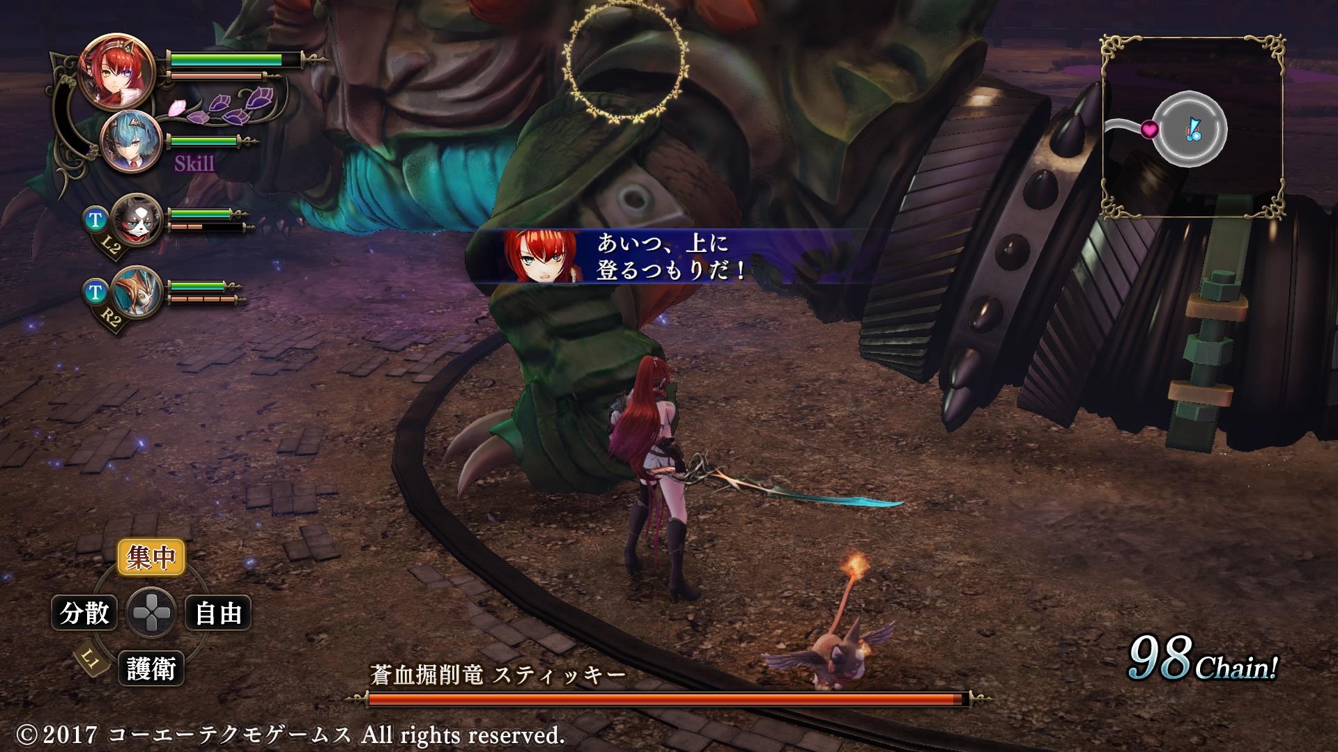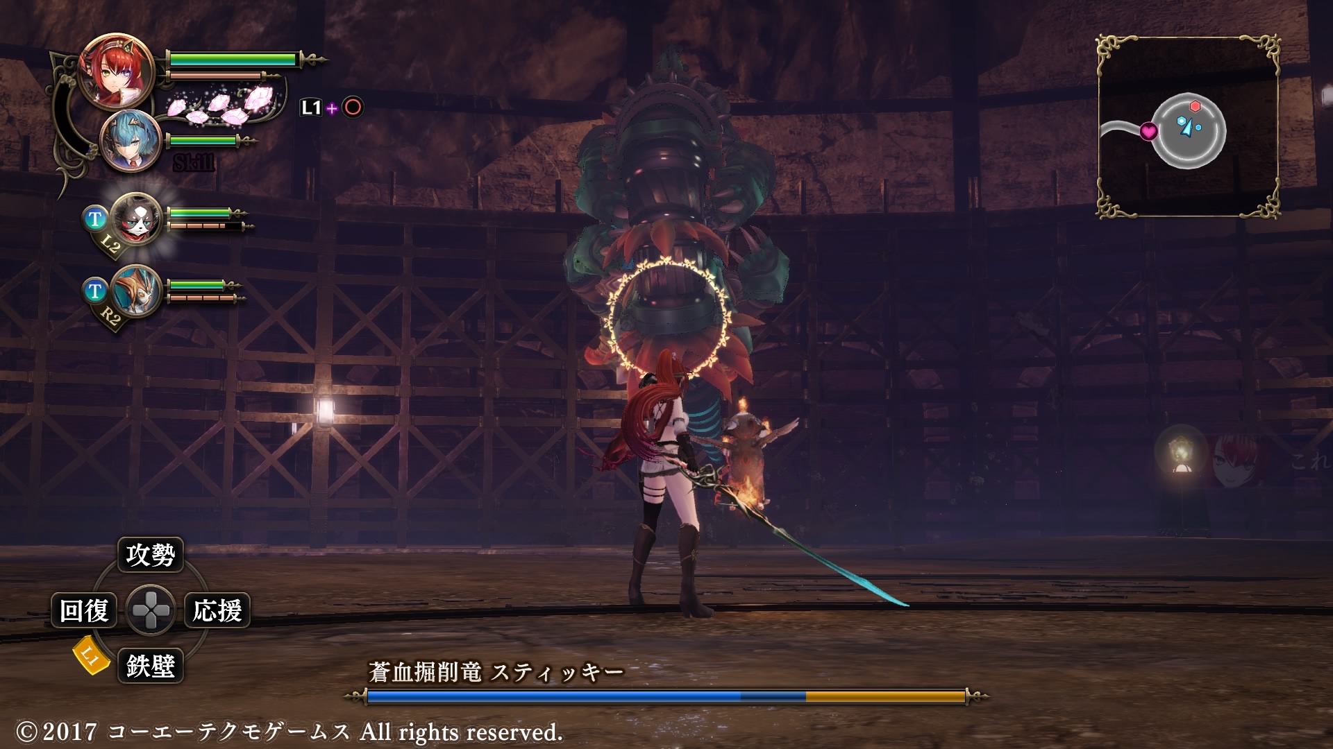 4章ボス HPゲージが3本もあるぞ! ボスのHPが減ると崖の上に登って攻撃してくるようになる 教皇の一人、エスフェリアだけは巫女を生贄にすることに反対しているようだ