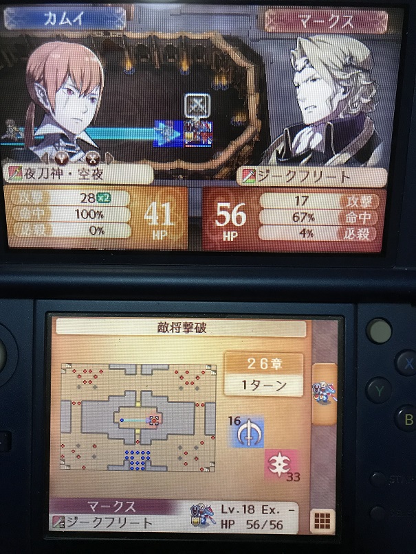 マークスと一騎打ちする26章は、ザコを倒してもドロップアイテムが夏祭しかないためメリットはなく、1ターン目でマークスだけ倒して決着