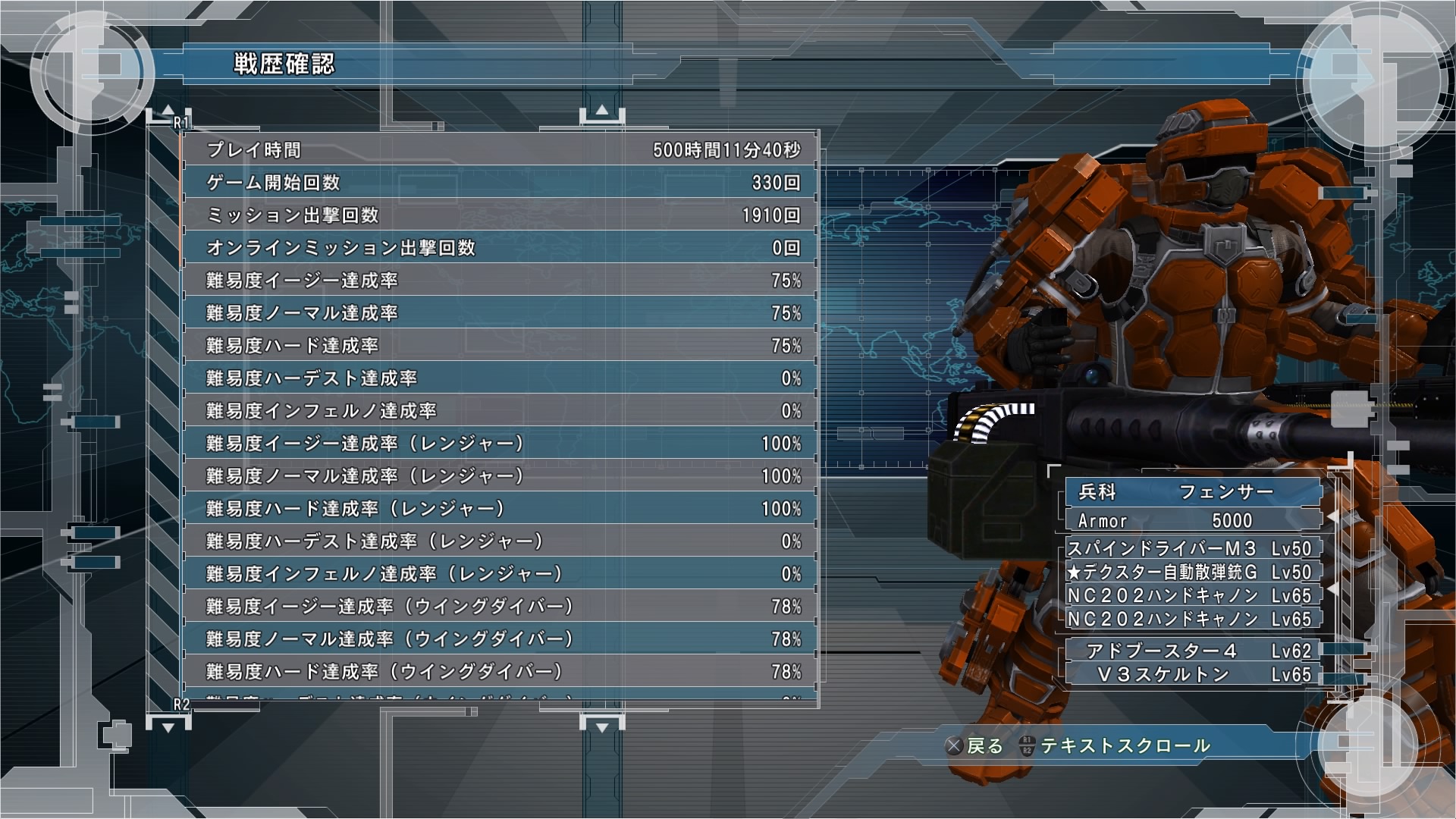 2周目よりもさらに時間短縮できましたが、経験が活きたというよりは武器レベル制限をオーバーした武器を使ったミッションが増えただけという側面も