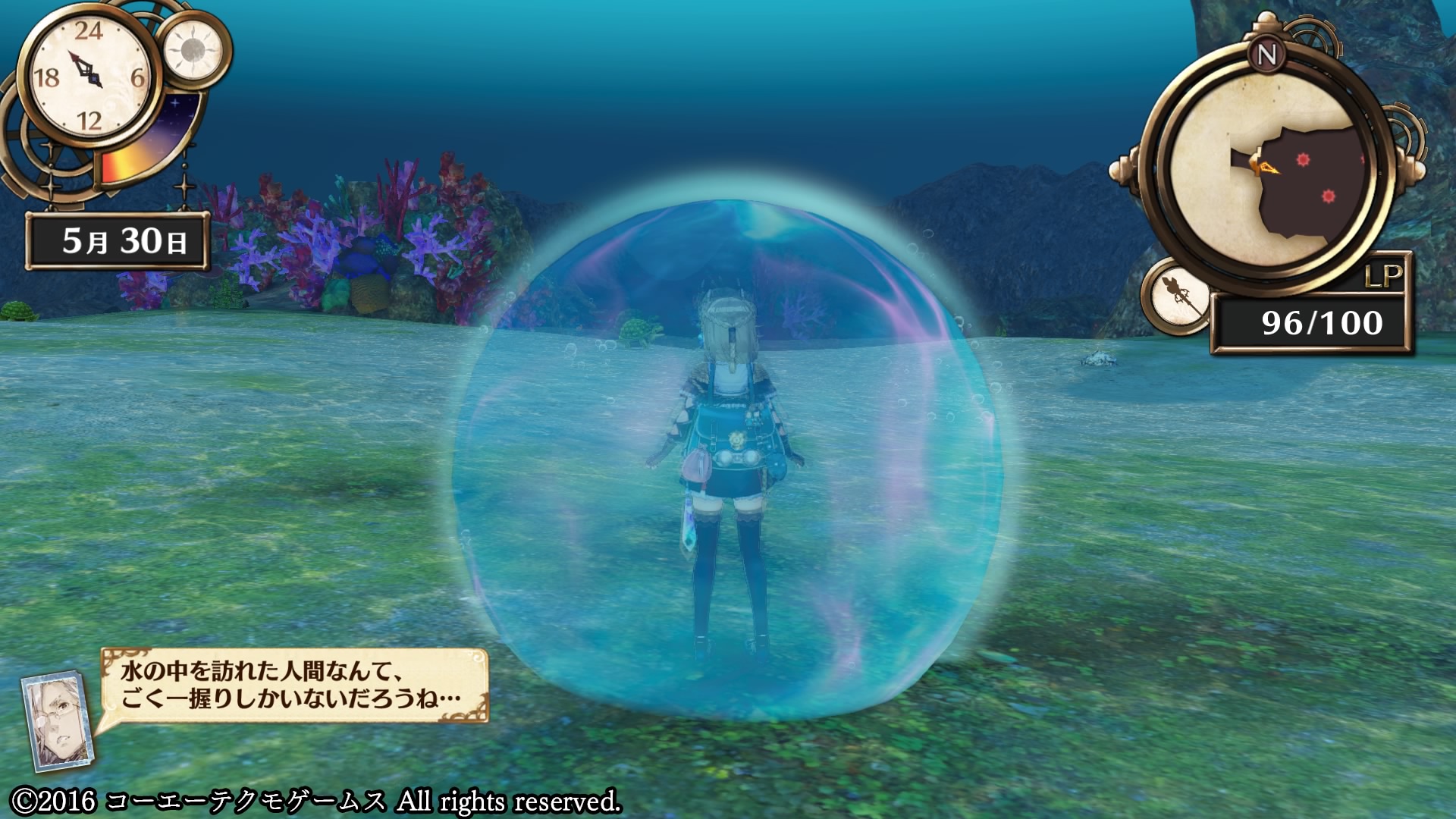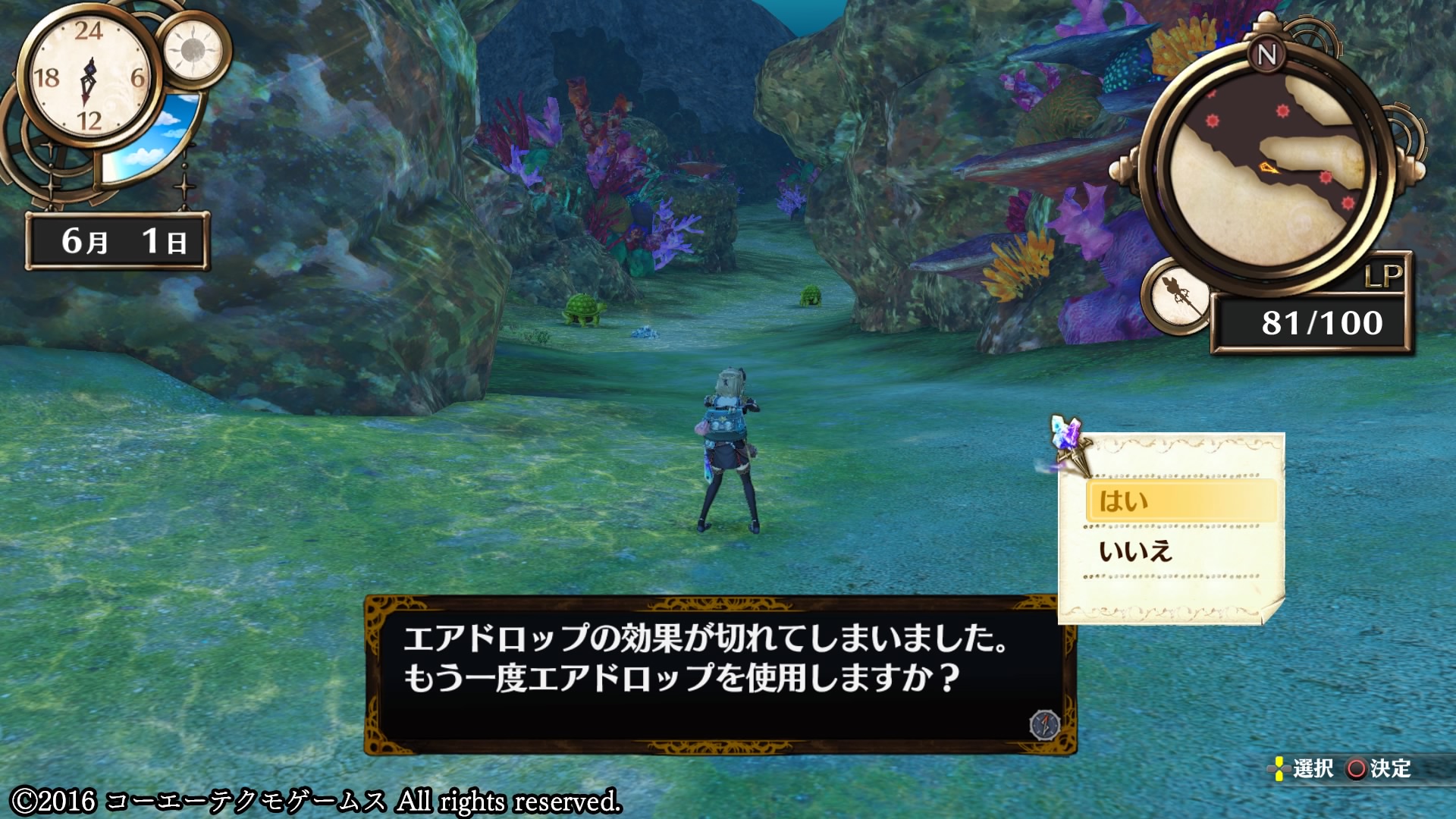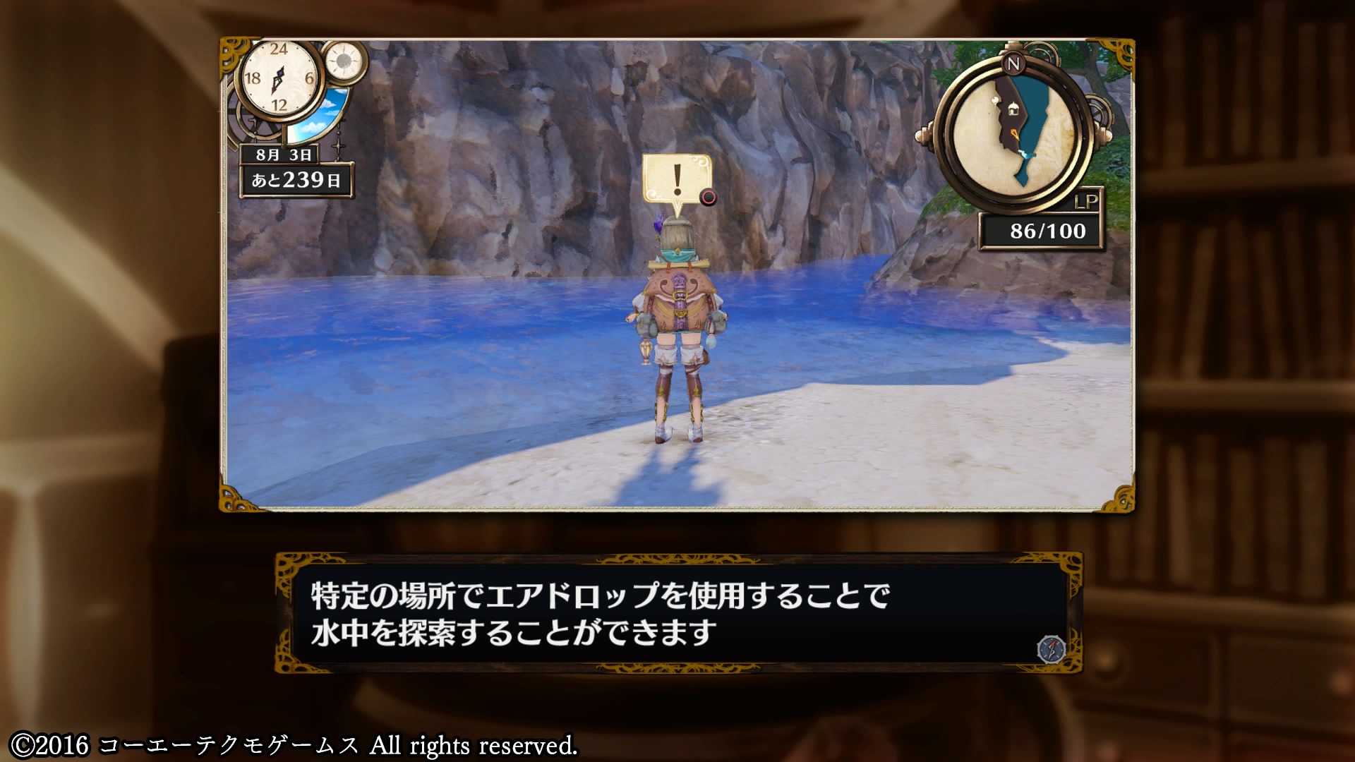 最大の特徴は探索に制限時間が存在することで、歩いた距離や時間ではなく戦闘中やメニュー画面を除いたリアルタイムでカウントされているため、水中の探索は常にダッシュで迅速に行動しなければなりません