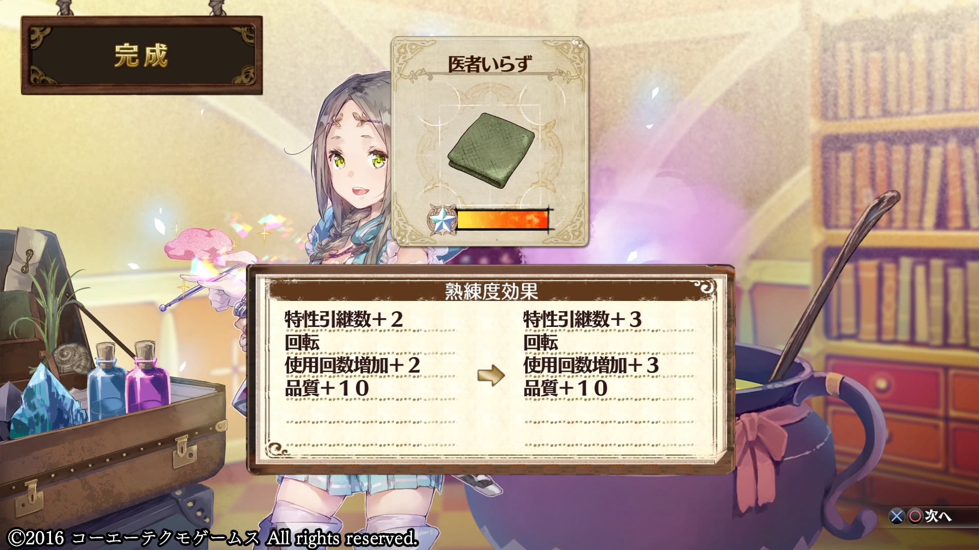 ・調合熟練度 … 最初から効果の高いアイテムが作成可能