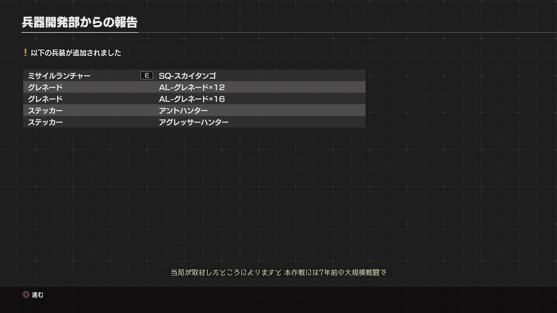 まあ今作は全ミッション数が50と少なめのようだから、新しい敵がハイペースで次々と投入されていくというのは想像できますけど
