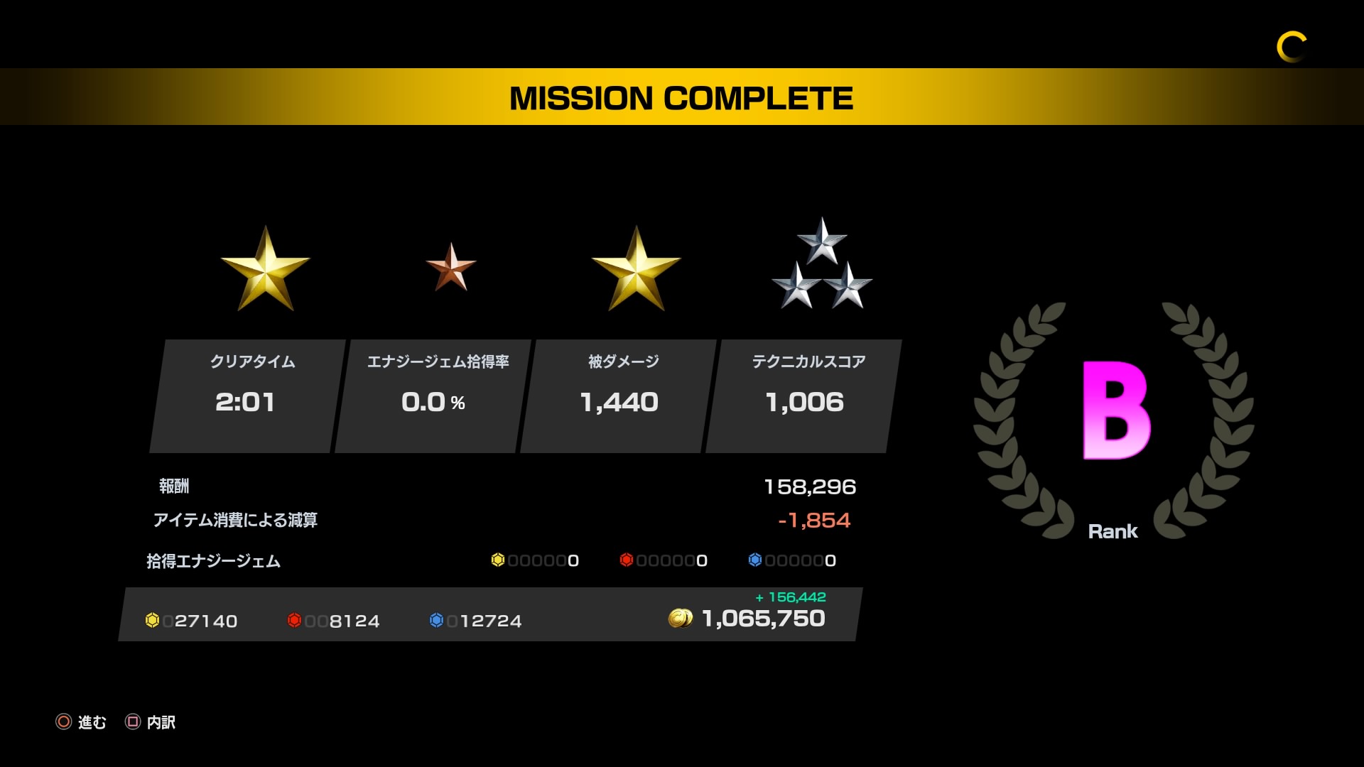Bランククリアの場合、メニュー経由とロード時間を含めると1周約3分で15万クレジット