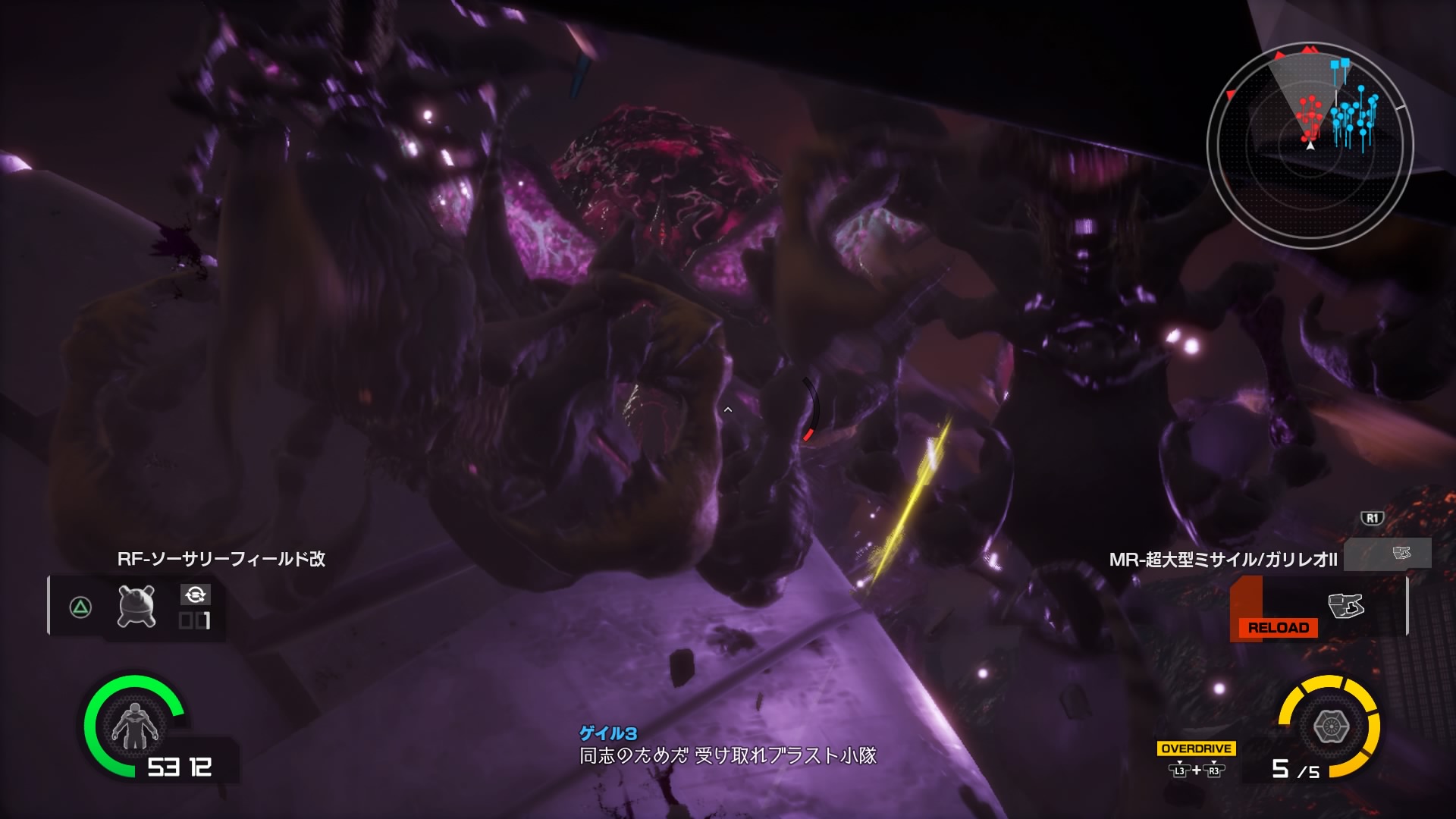 ガリレオは標的に着弾しないとリロードが始まらず、たまに目標地点からそれることがあるのでレーザーで補正しつつ着弾を確認すること