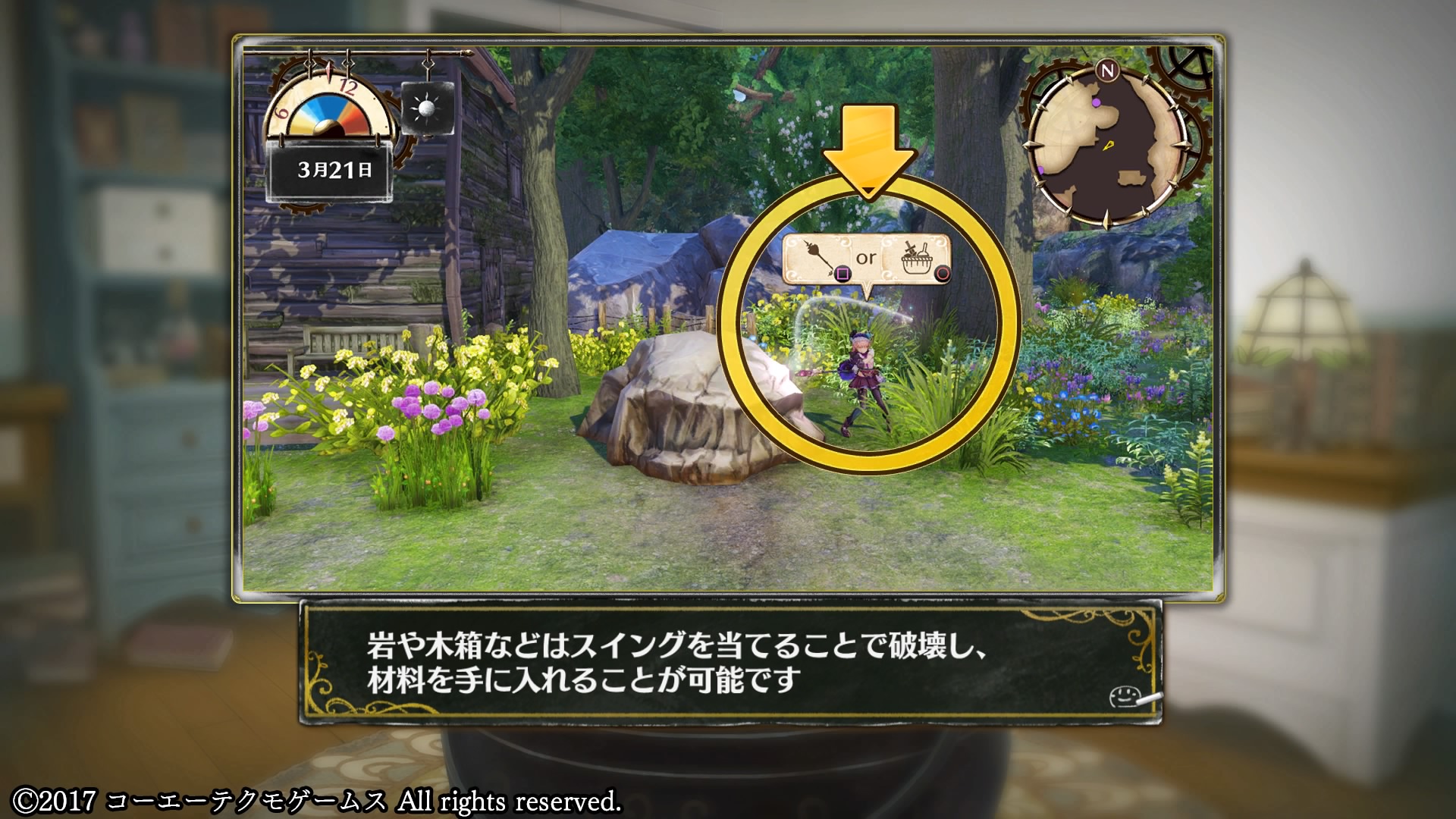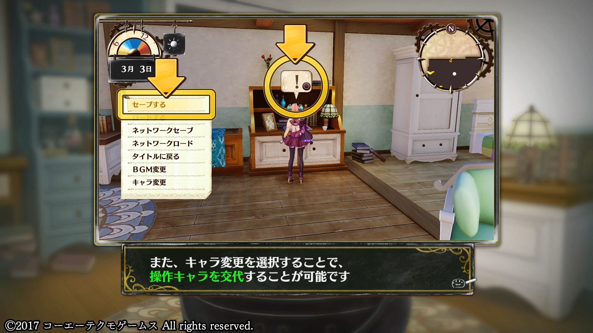もう片方はアトリエ内で話しかけられるキャラとして登場し、当然操作キャラによってセリフが変わるほか、BGMも変化します