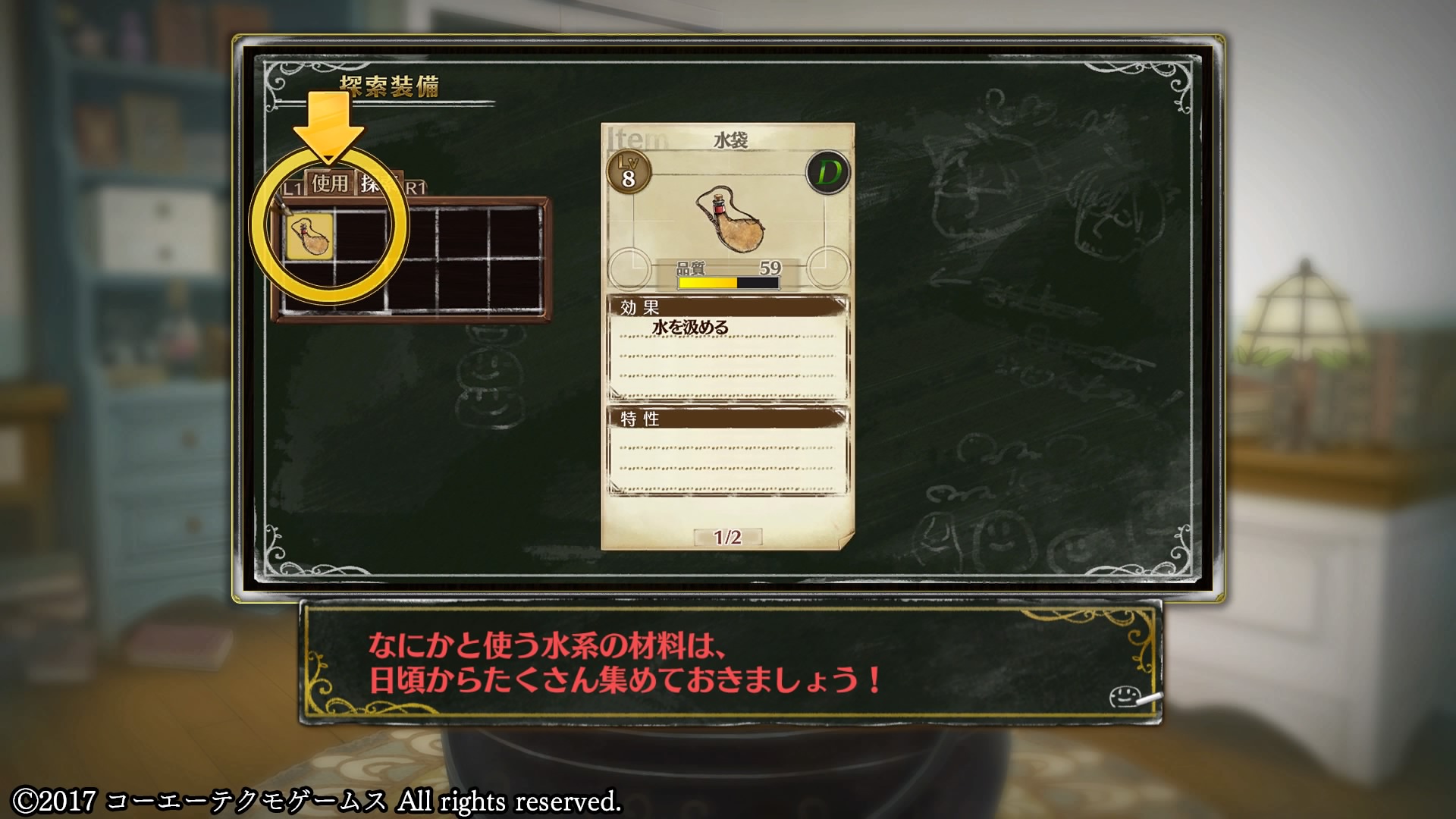 ソフィー、フィリスの調合だとパズルにピースを埋めていくイメージで、1マスでもピースが重なると先に投入していたピースがまるっと消滅してしまいます