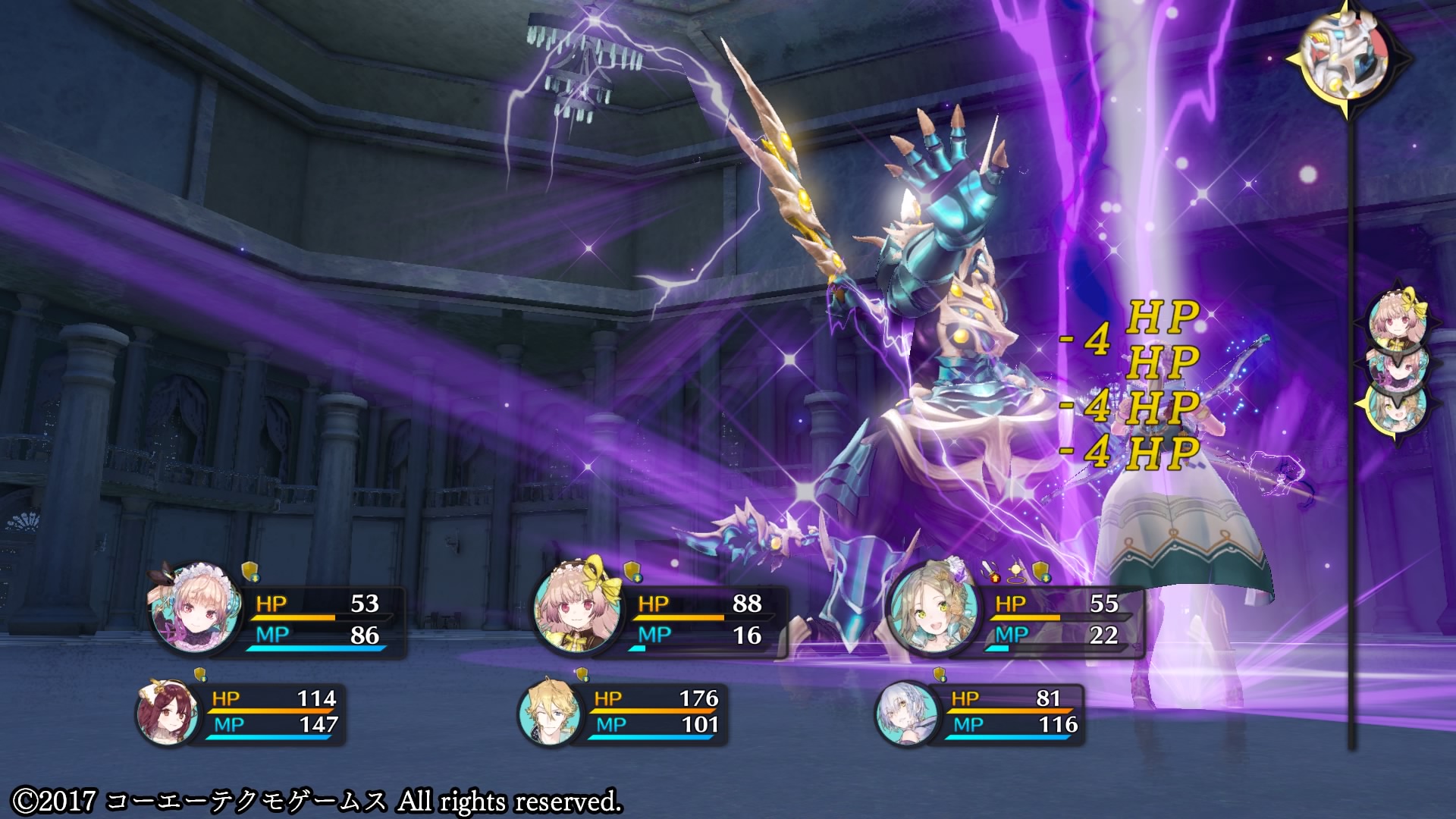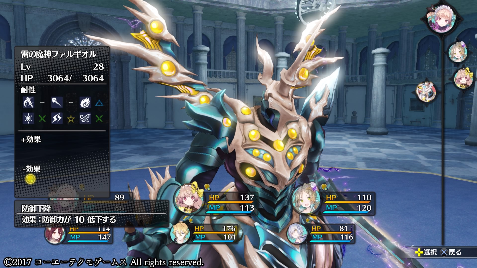 さらに、ファルギオルに攻撃したキャラはカウンター攻撃を受けるため、HPを回復してやるのはもちろん、MPが切れたキャラは後衛と交代するなど6人全員で協力して戦おう