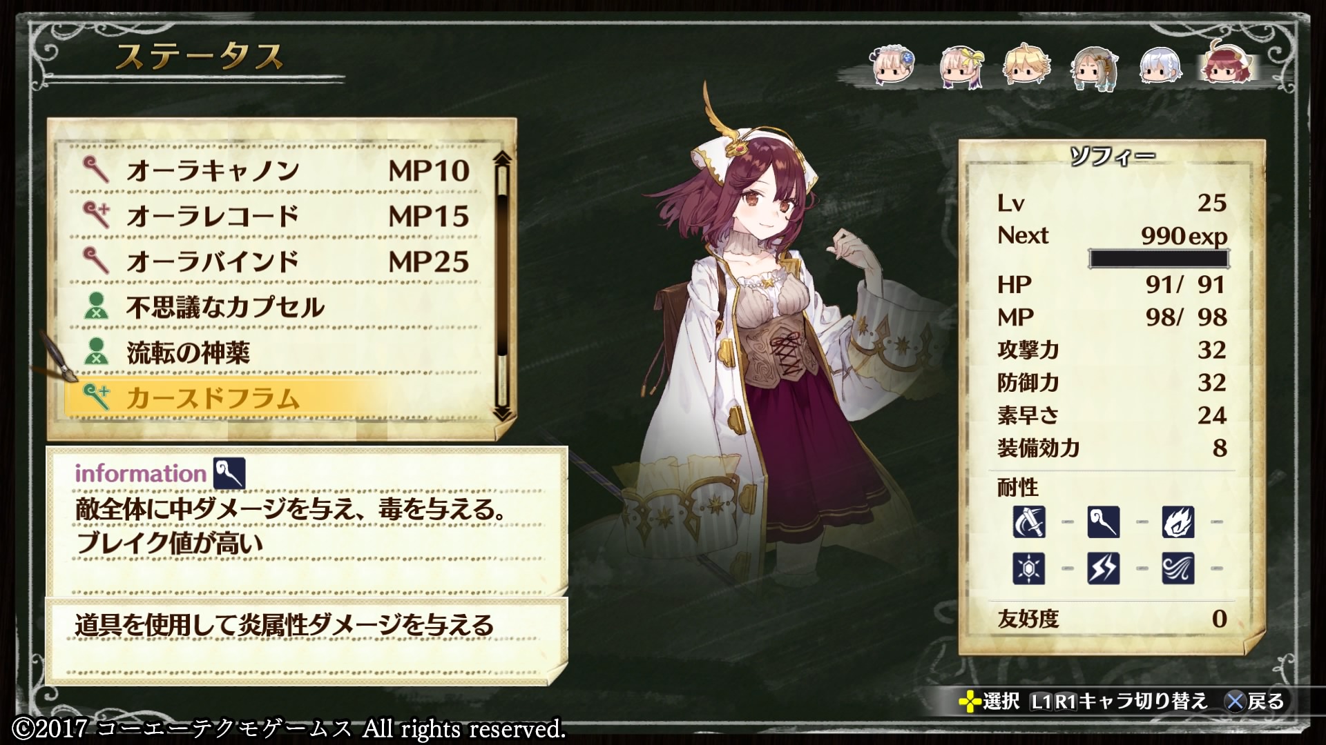 不思議シリーズ初代主人公にして常識外れの錬金術を駆使するソフィーはどんなチート能力を持っているのかと思ったらそんなことはなくて、ステータスやスキルは割と平凡です