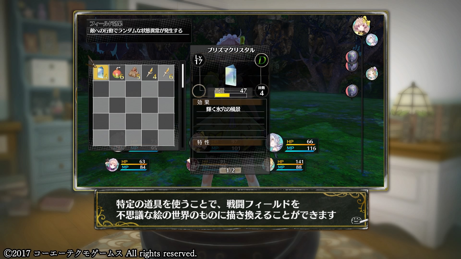 ただ、今までの通常のバトルミックスだと消費するアニマは1回につき数個で、絵画マップの探索中は常に所持数99個でカンストして使い切れない状態なので、出し惜しみせず積極的に使う方が利口かも