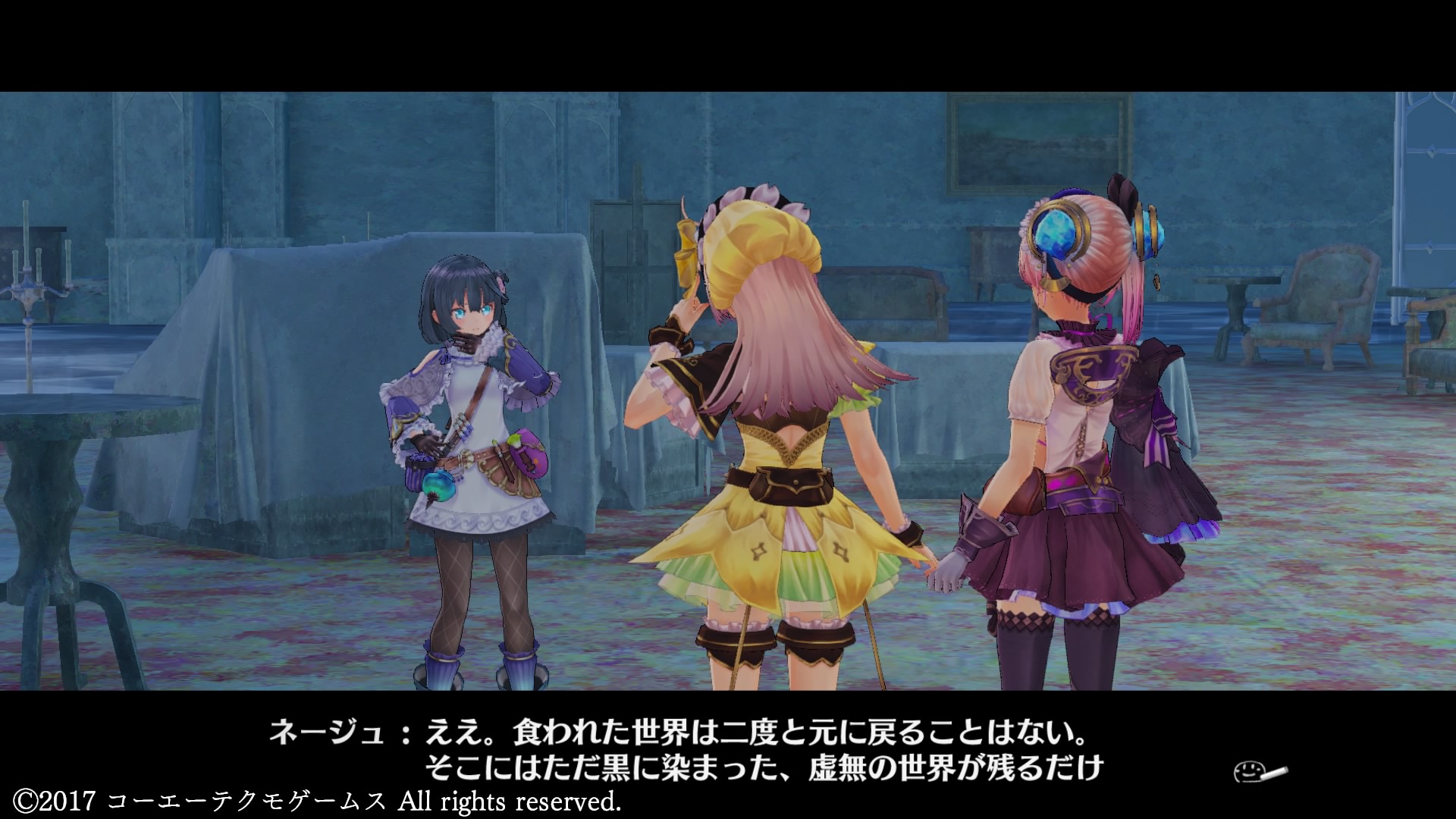この状態になるのは星彩平原に入れるようになってからの短い期間限定なので、途中でアトリエに戻ってキャラチェンジしたり戦闘中に隊列を代えたりしてなるべくたくさんボイス差分を聴きたいところだけど、どれもいつもの2人とは思えないやる気のなさで刺々しいため、あまり聴き過ぎるとこっちまで鬱になってしまいます(;;)