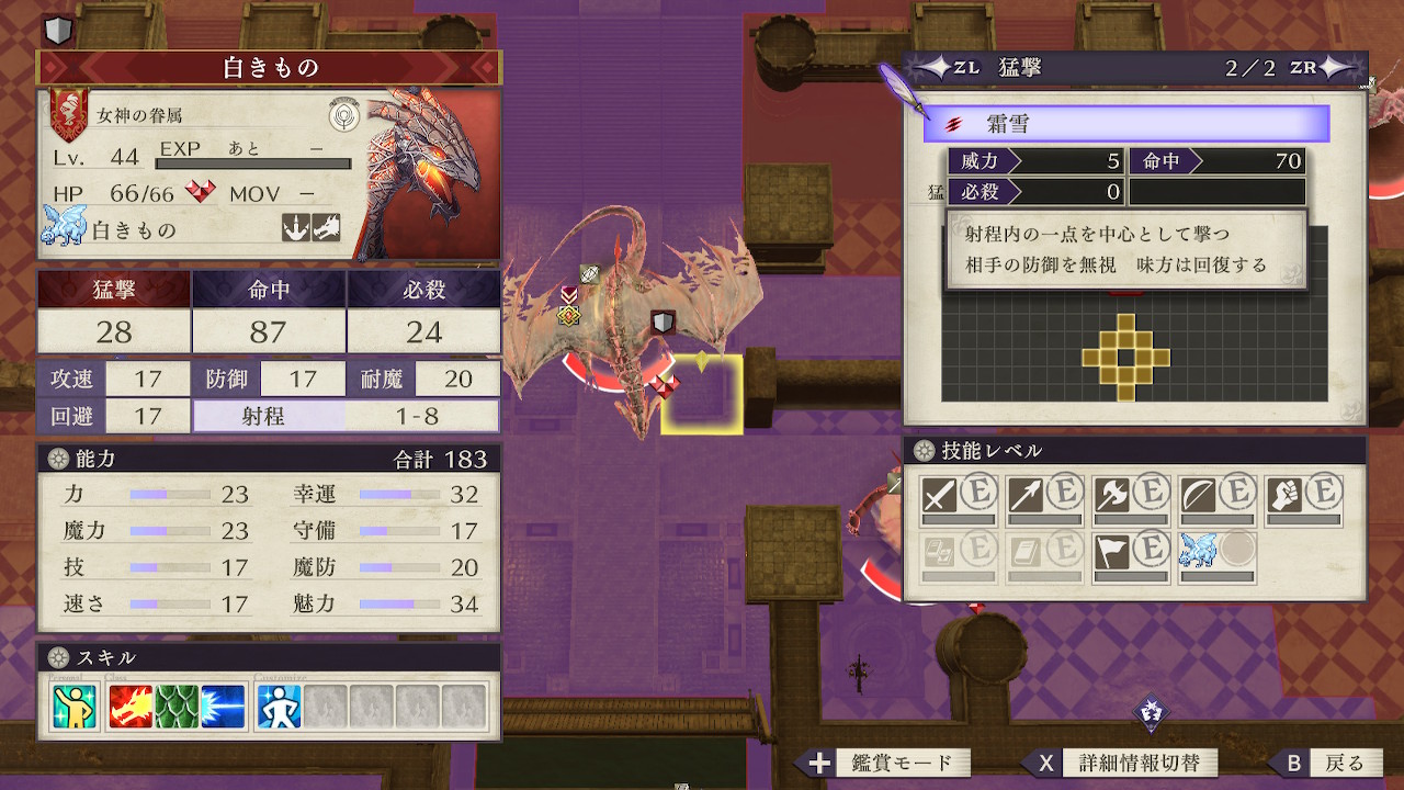 LV据え置きでステータスが強化されるほか、射程が脅威の8マスに伸び毎ターン猛撃を使用するようになる