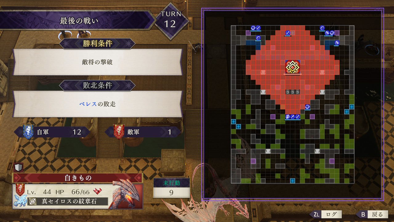 またラスボスの猛撃は射程も攻撃範囲も広く、自軍ユニットが密集しているほど被害は大きくなるので、紅花の章の時のような一点突破ではなく自軍を拡散させ全方位から攻撃を仕掛けた方がいい
