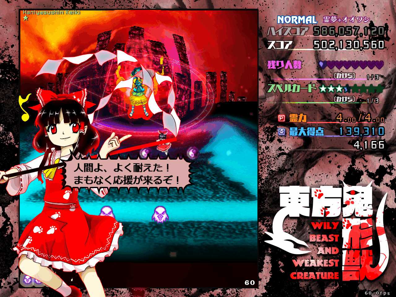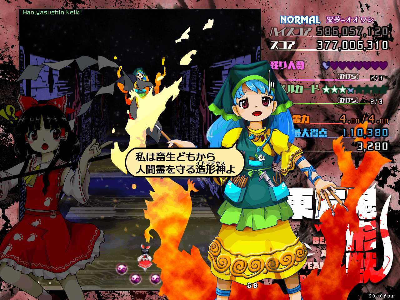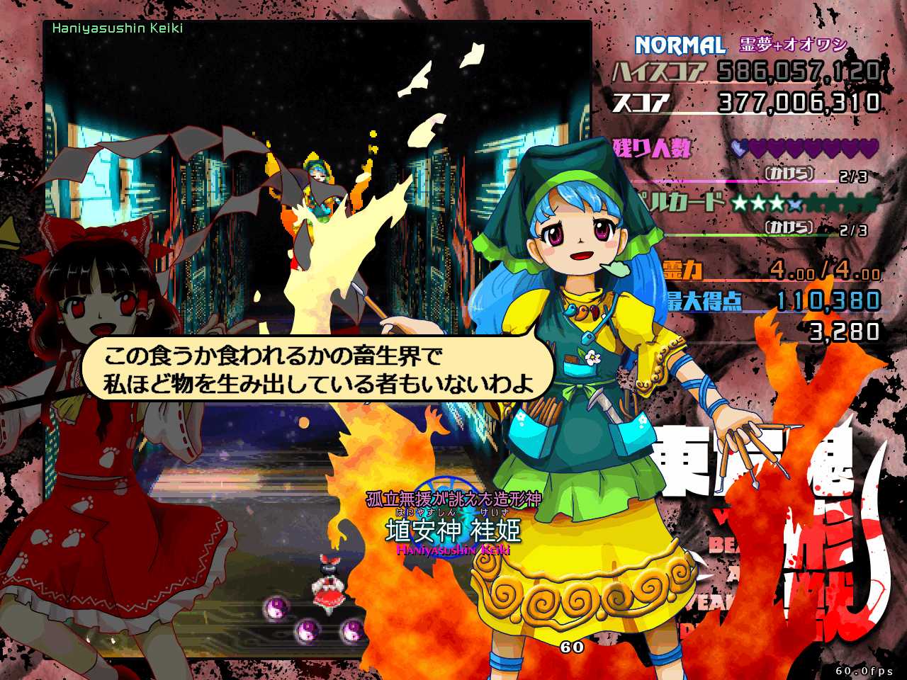 前作天空璋では本編だとラスボスの隠岐奈に力を奪われて元の世界に強制送還させられるし、その前の紺珠伝では、レガシーモードで挑むとエンディングで勝てずに逃げて来たことになっているなど、最近の東方ラスボスはただ戦って懲らしめられるだけではない強さがありますね