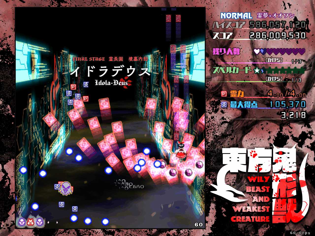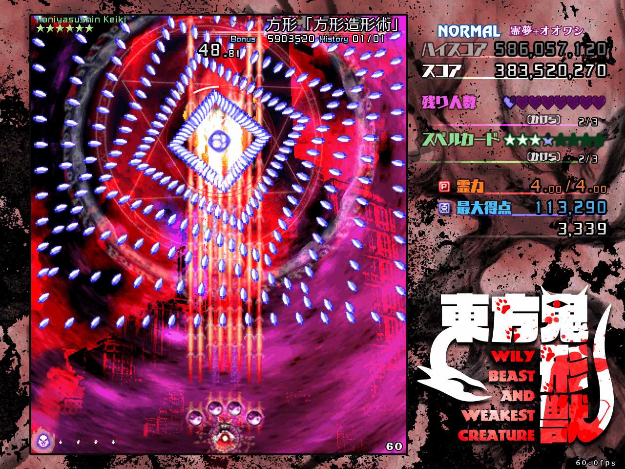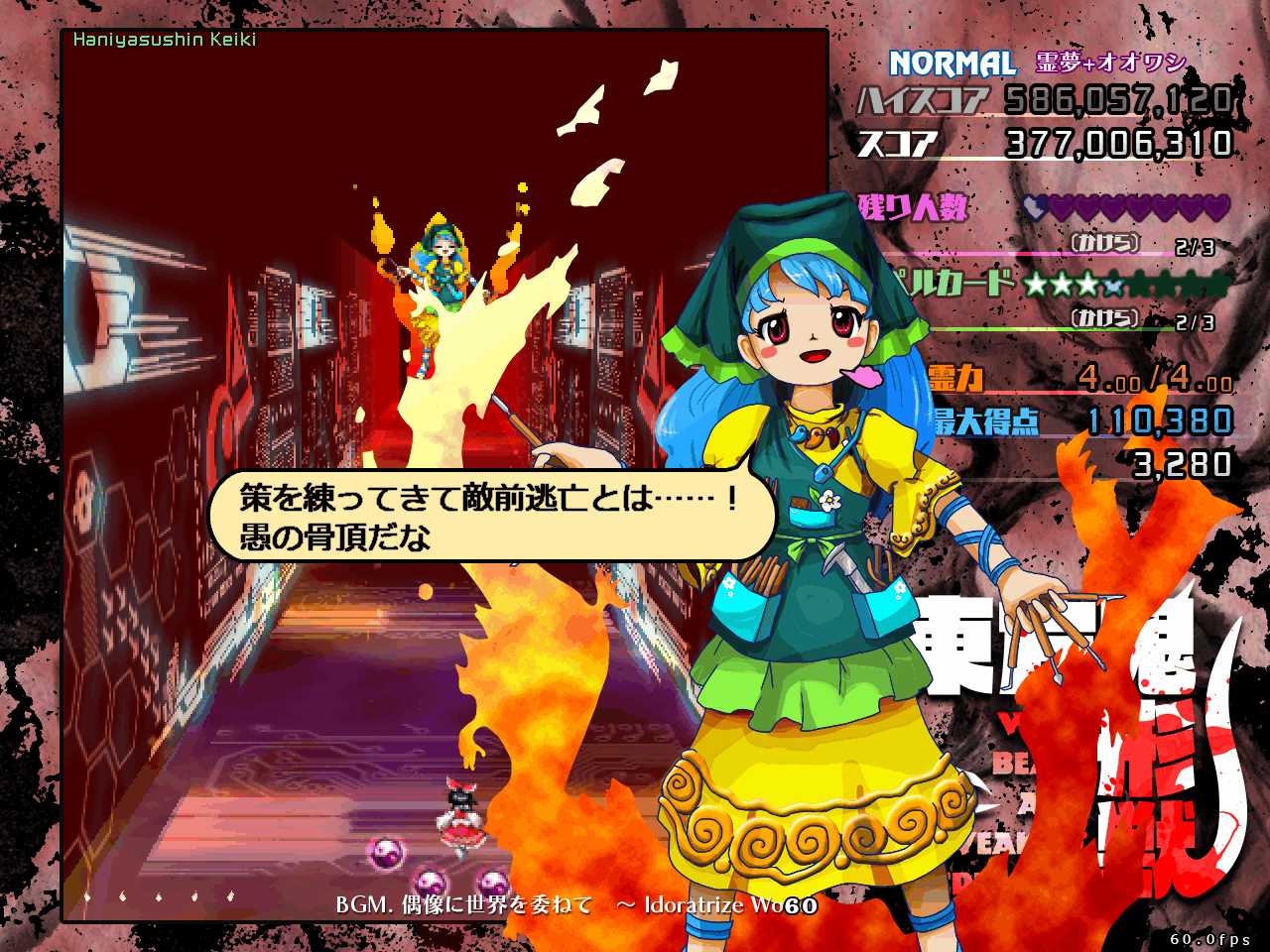 前作天空璋では本編だとラスボスの隠岐奈に力を奪われて元の世界に強制送還させられるし、その前の紺珠伝では、レガシーモードで挑むとエンディングで勝てずに逃げて来たことになっているなど、最近の東方ラスボスはただ戦って懲らしめられるだけではない強さがありますね