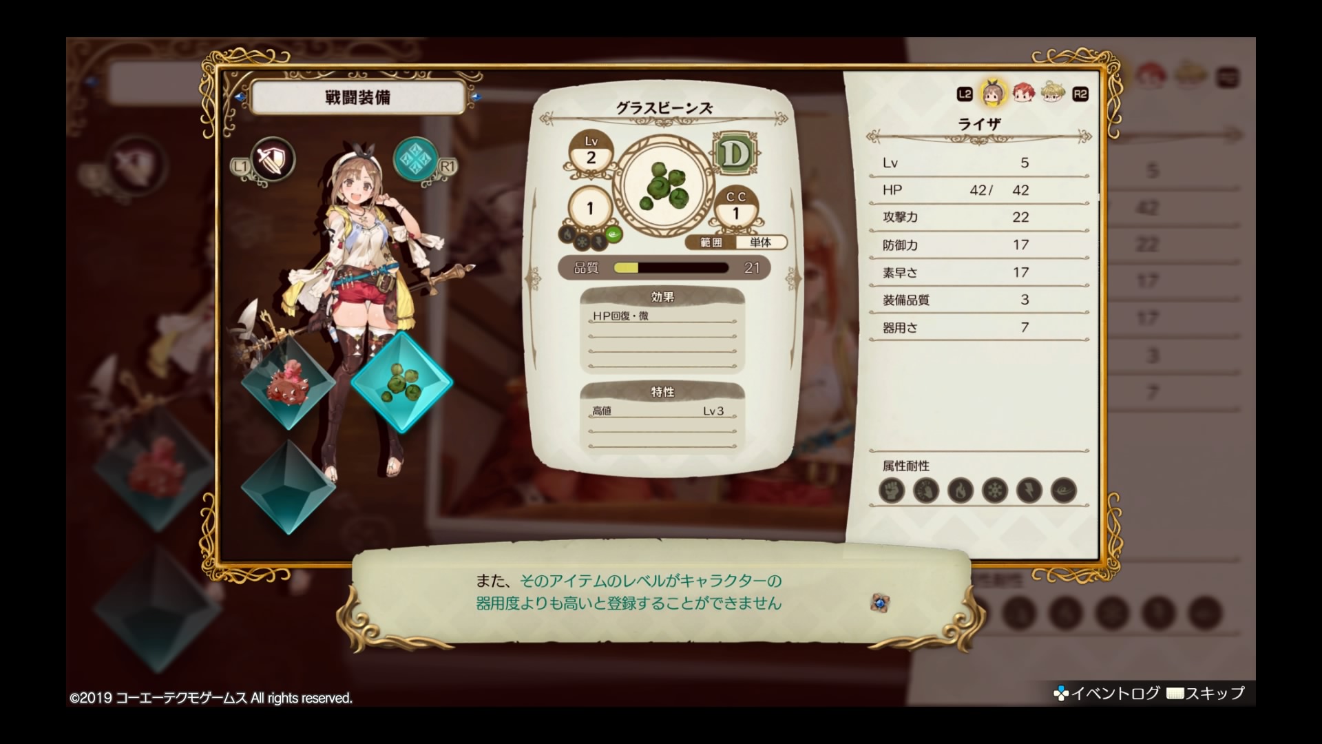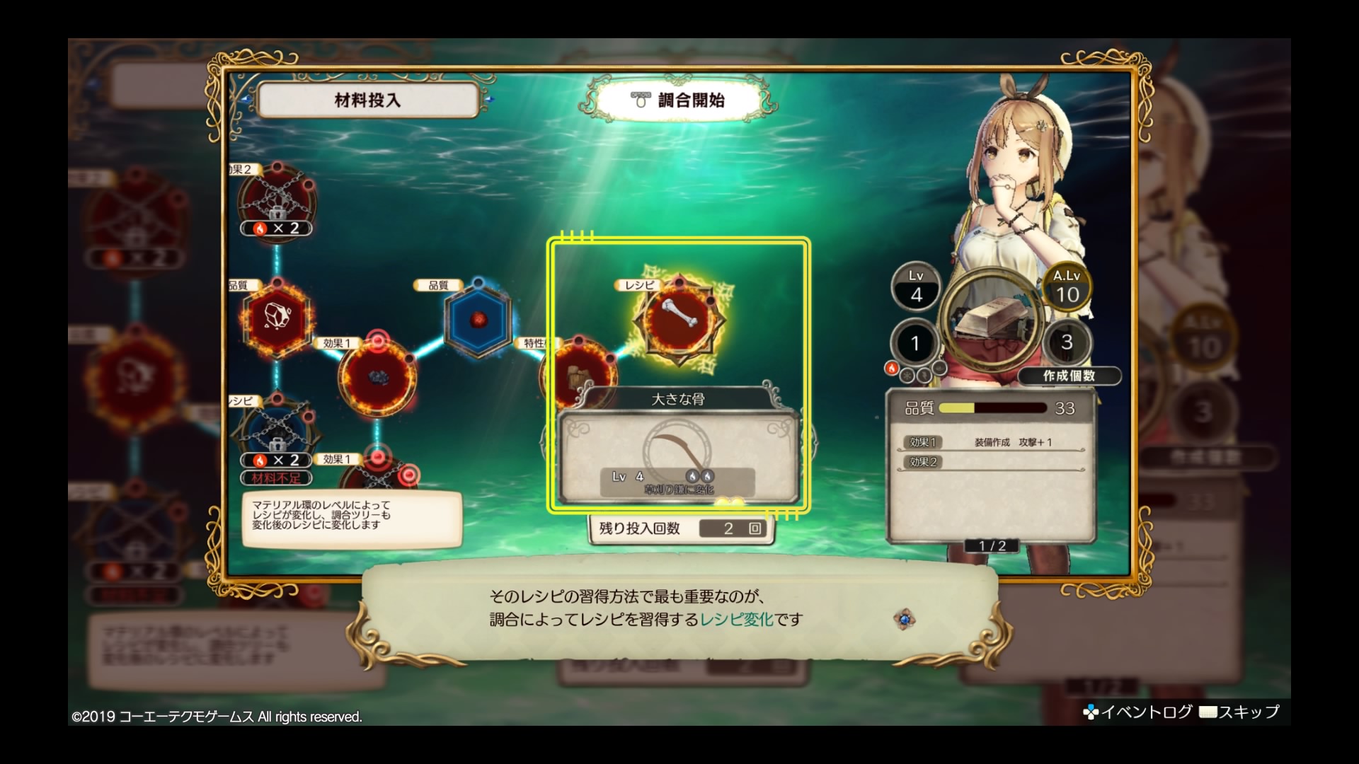 今までのアトリエシリーズでも、調合アイテムに特定の効果や特性をつけることで新しいレシピを発想することがあったから、その発展形かな