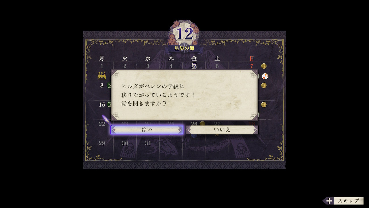 そしてその直後、カレンダー画面でなんとヒルダが自発的に転入を希望してきました!!