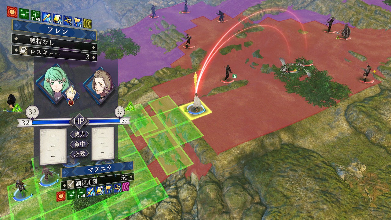 マヌエラがいるのは崖の上で、徒歩で回りこんでいては間に合わないので、飛行ユニットを先行させるが、レスキューで救助しよう