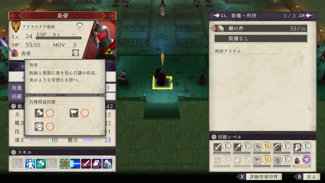 2月の課題戦闘は、黒鷲ルートだと最初からエーデルガルトが炎帝であることを明かしたのに対し、青獅子ルートではマップをクリアするまで炎帝の仮面は外れない