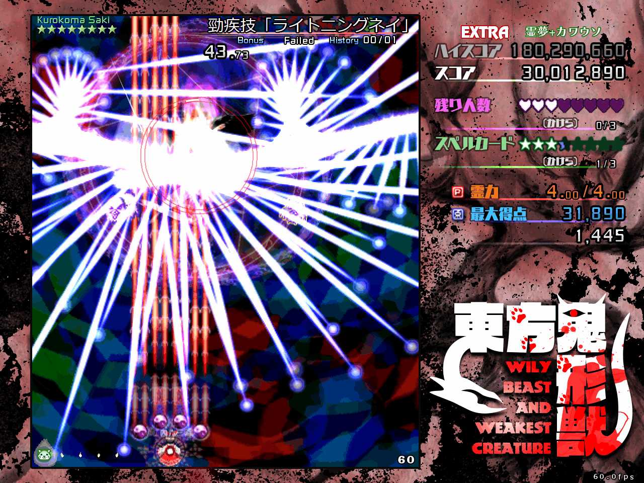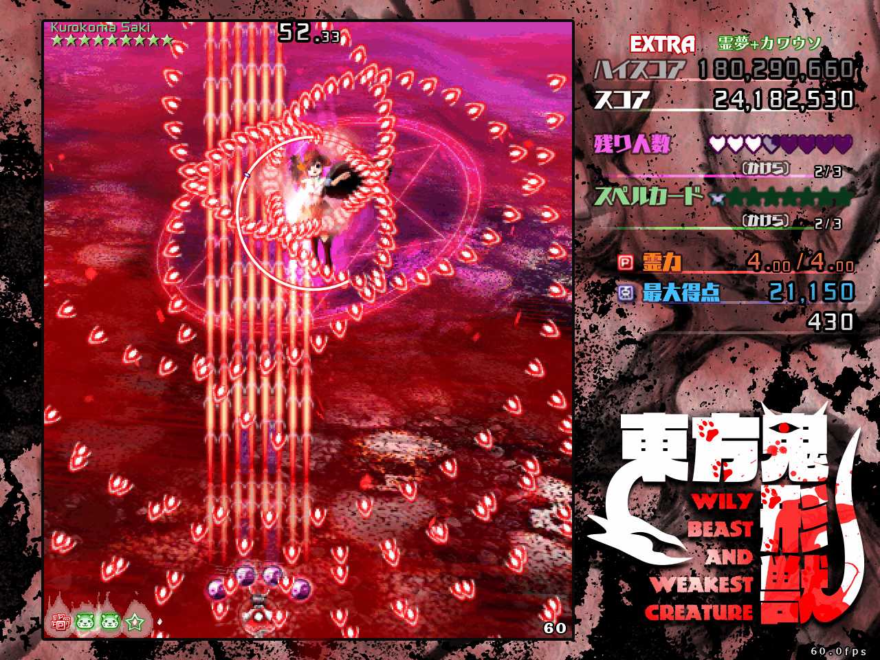 なので本番中は動物霊を回収したいという雑念は捨てて弾避けに集中し、回収するなら通常攻撃時にボムって強引に回収するくらい気持ちを割り切るのが重要です