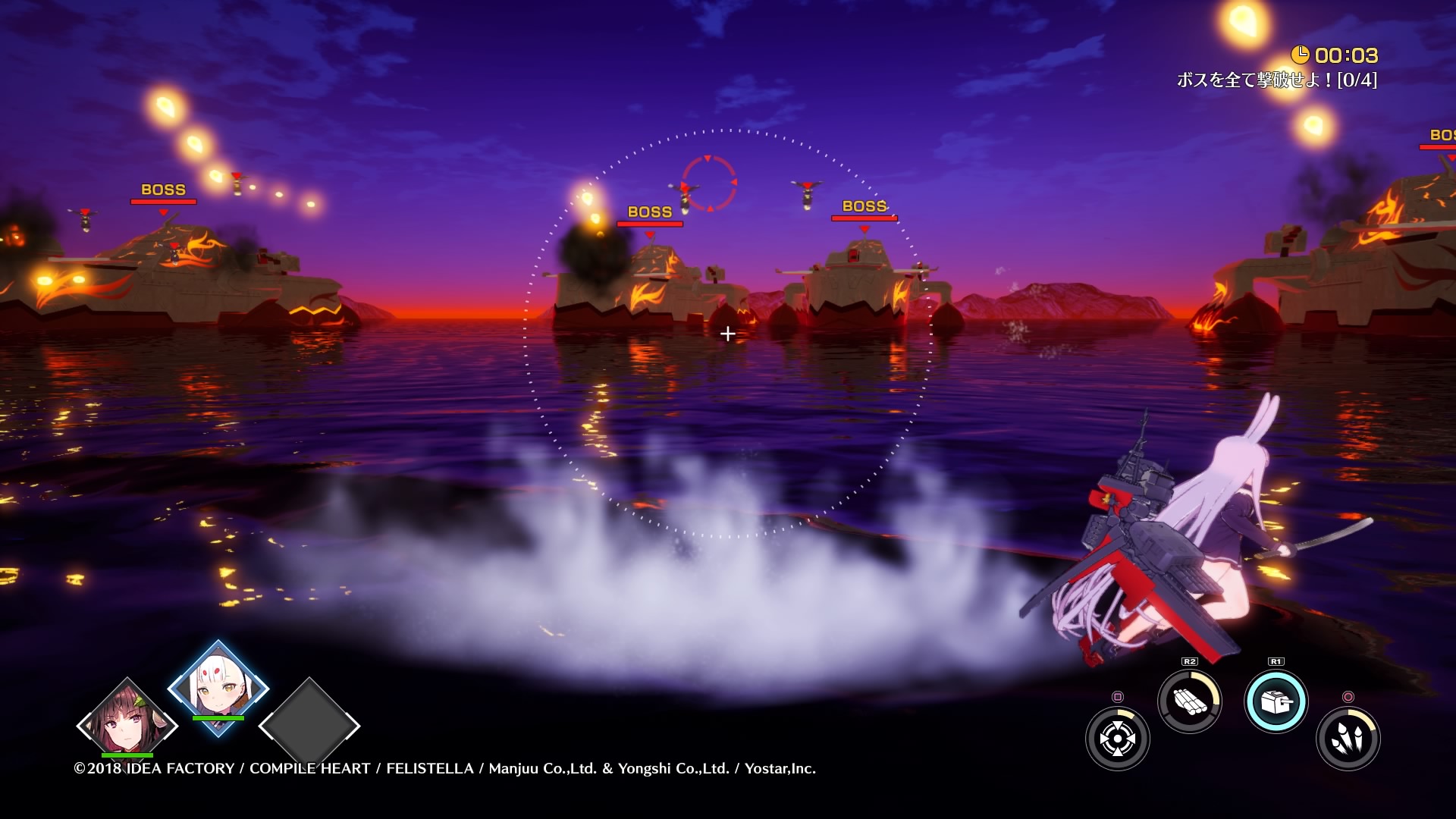 操作する艦種によって操作感や戦い方はかなり変わるが、初期艦の駆逐艦操作では、敵の弾幕を回避しながら照準を合わせて砲撃するという、常に左右のスティックを入力し続けるようなスピード感溢れる戦闘になります