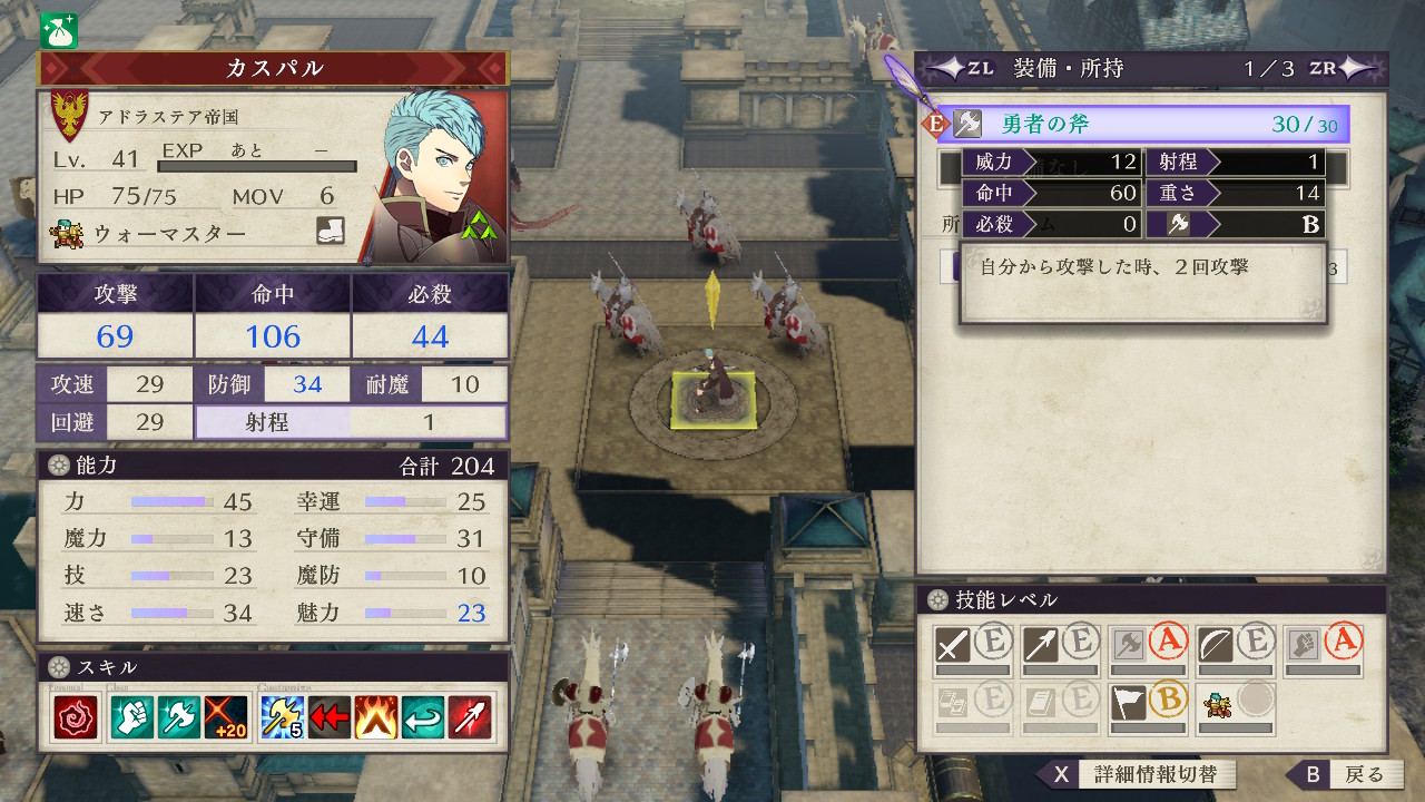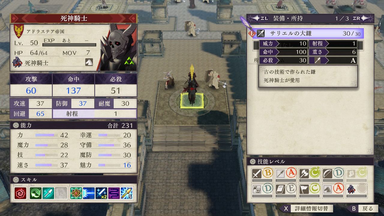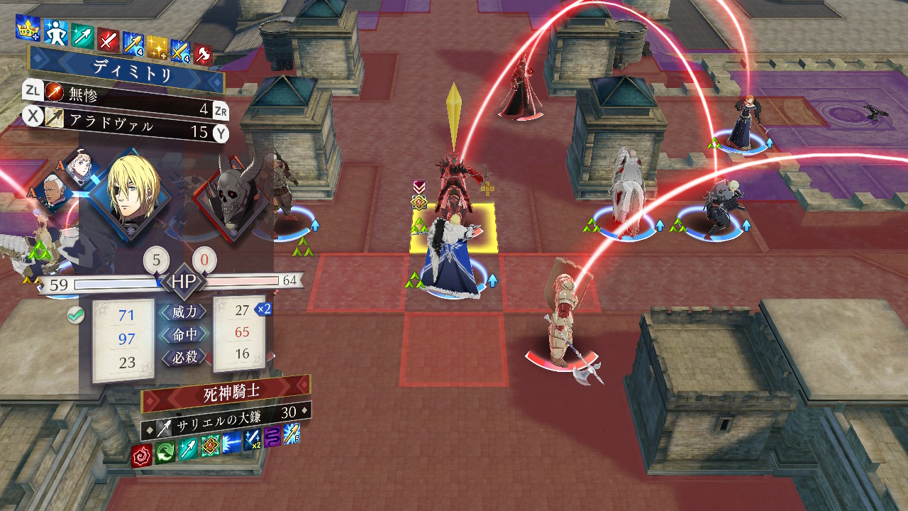しかし、ディミトリ専用のアラドヴァルを使った戦技「無惨」なら、特攻がついて死神騎士を一撃で撃破することができるので、これが最も確実な攻略法と思われます