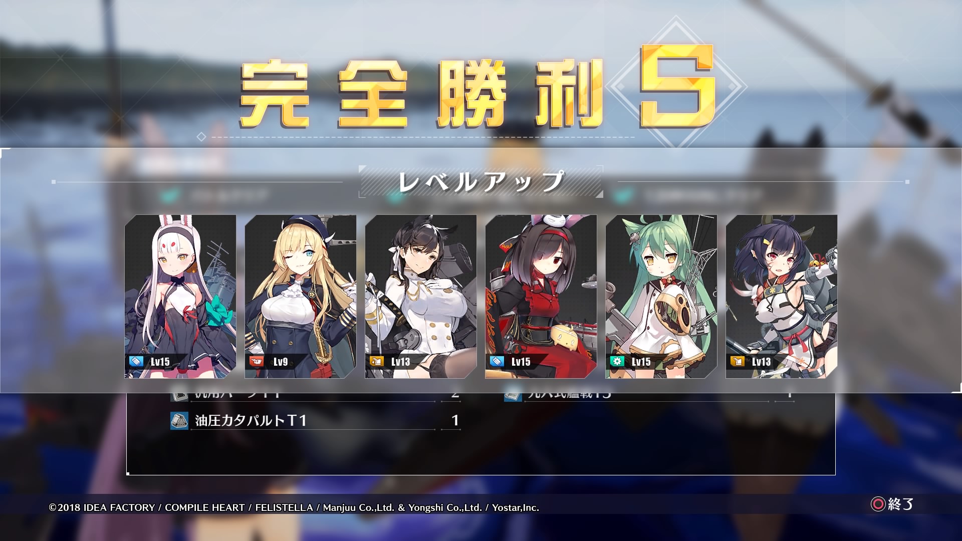 またクリア時の取得経験値は章が進むと桁が繰り上がるくらい急激に増加するため、新しく投入した艦船でもすぐに主力艦のLVに追いつけます(画像の例では金剛が初出撃)
