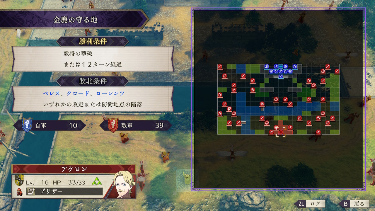 10月の課題、鷲獅子戦では他ルートだと金鹿が陣取っていたマップ南東に青獅子が配置される