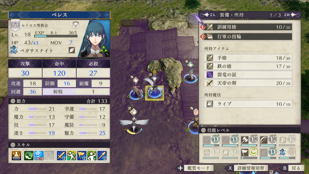 主人公の兵種、今回は女性なのでペガサスナイトからの飛行系の兵種を修めることに