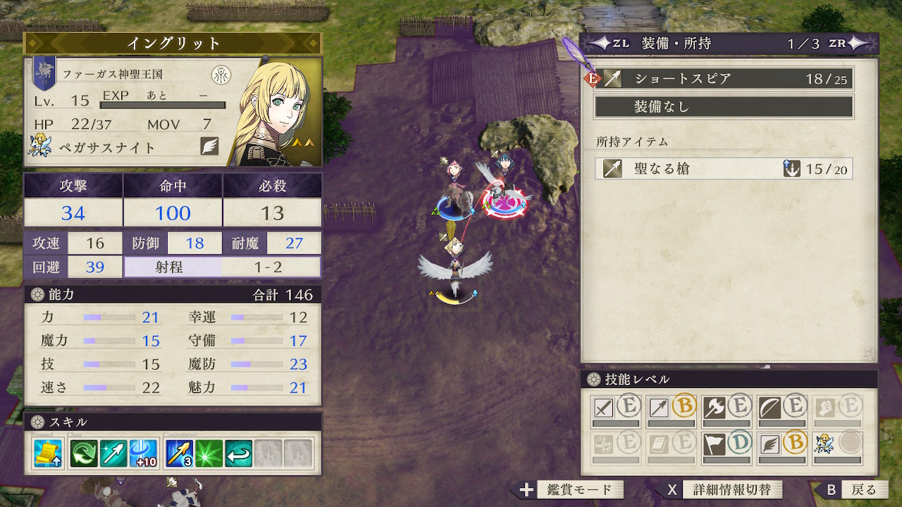 強化後のイングリッドのステータスを同じ兵種の主人公と比較したら圧倒的に主人公が負けてるし