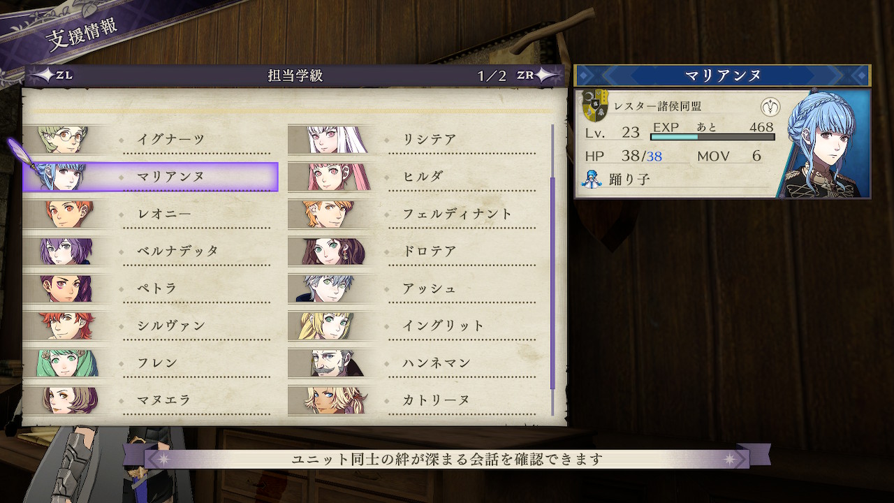 前回は青獅子と金鹿の生徒の支援を結ばせるという方針で起用したので、今回は金鹿と黒鷲を交流させるべく、黒鷲全員をスカウトするのを目標にしています