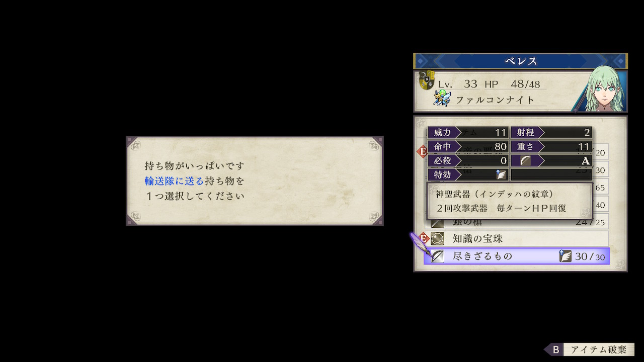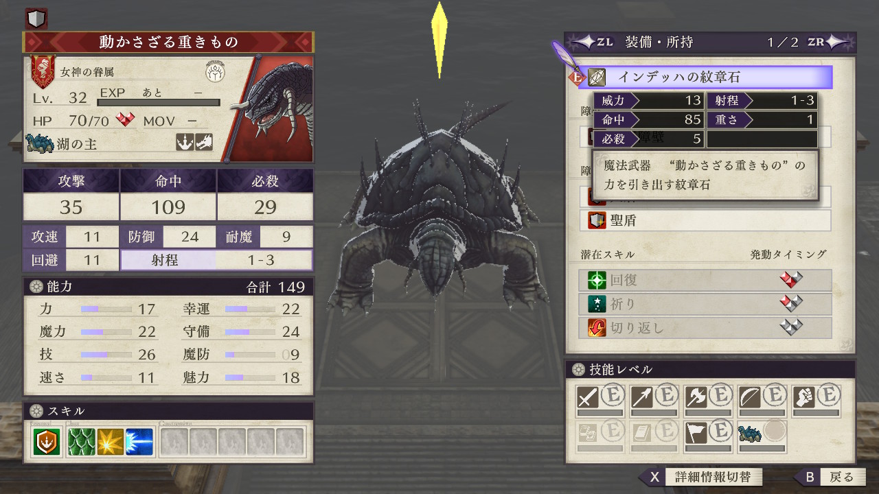 効果は、HP50%以上の時に攻撃されると必ず追撃するというものなのだが、さらに攻速に関係なくこちらの追撃を無効化するという効果まで持つ