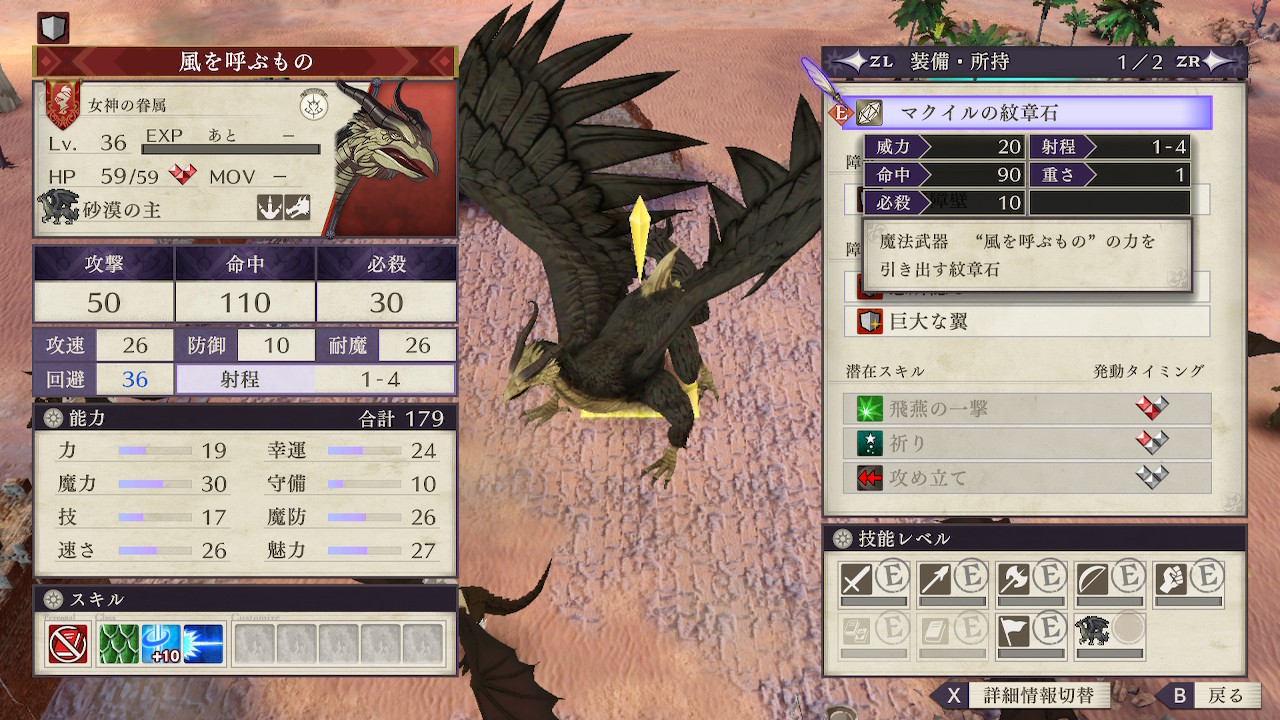 攻撃はインデッハと同じく魔法扱いで、射程はさらに長い4マスの上、応撃のスキルを持っている