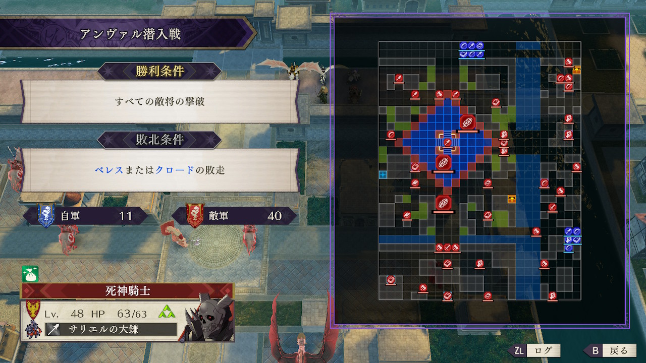 主人公とクロードが移動力9の飛行系なので強行突撃して進路をふさぐことはできたけど、もっといいプランはないのだろうか