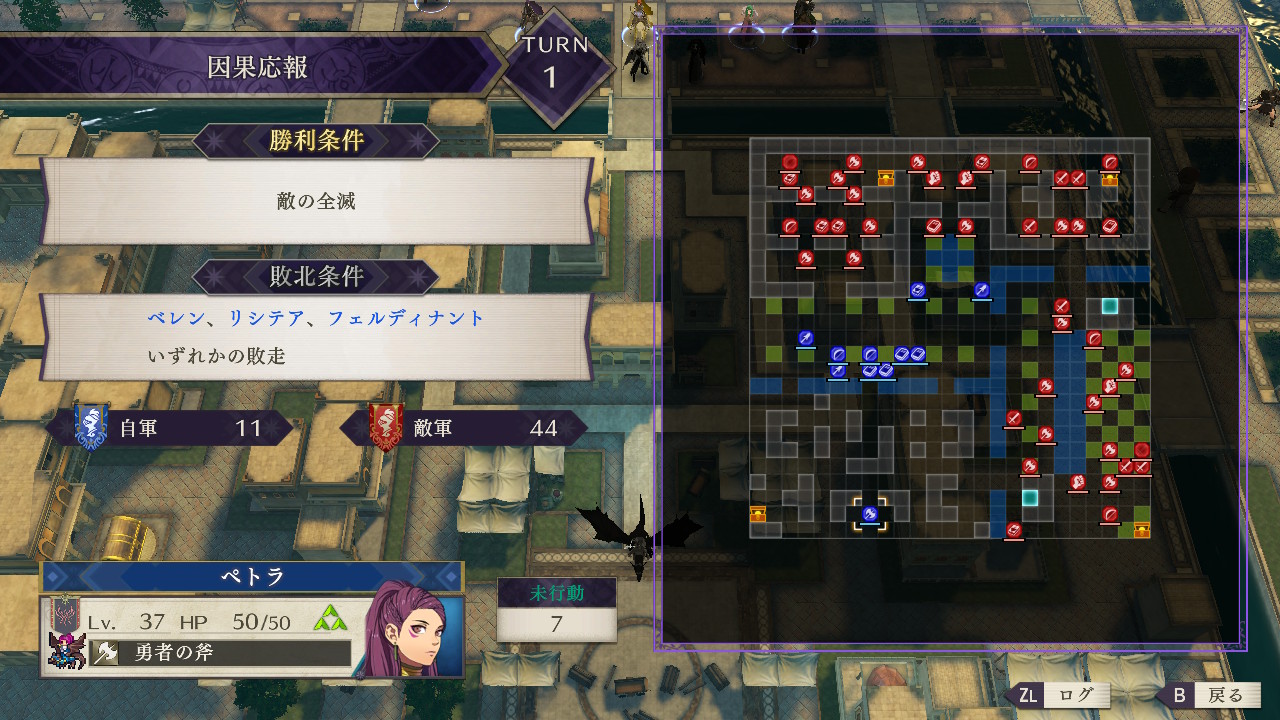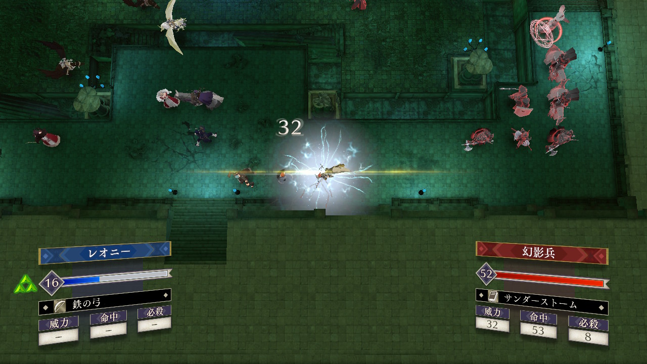 敵の増援は一切出現しないため、自軍の初期配置付近で向かってくる敵を迎撃するだけなら簡単だったが、射程3のゴーレムやボウナイト、サンダーストーム持ちが向かってくる際、地形越しに攻撃してくるためこちらの行動範囲がかなり圧迫されてしまうのが厄介