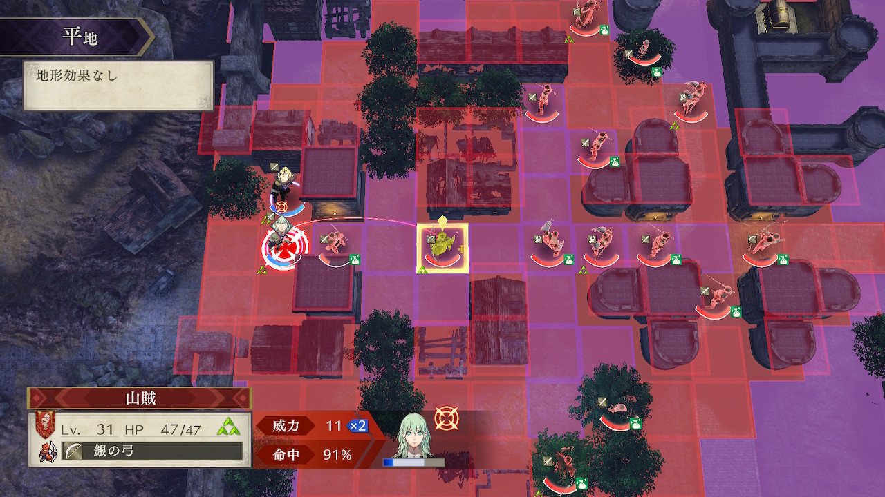 このマップに出現する敵ユニットの武器種は剣、弓、拳のみなのだが、実は剣とそれ以外とで行動パターンが大別されている