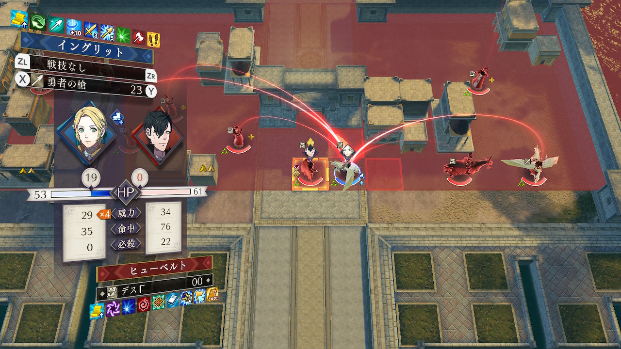 締めくくりのヒューベルトは、ルナティックによるステータス強化と地形効果が合わさって驚くほど回避が高くなっており、弓での遠距離攻撃や飛行系での奇襲で撃破するのはかなりの運ゲー