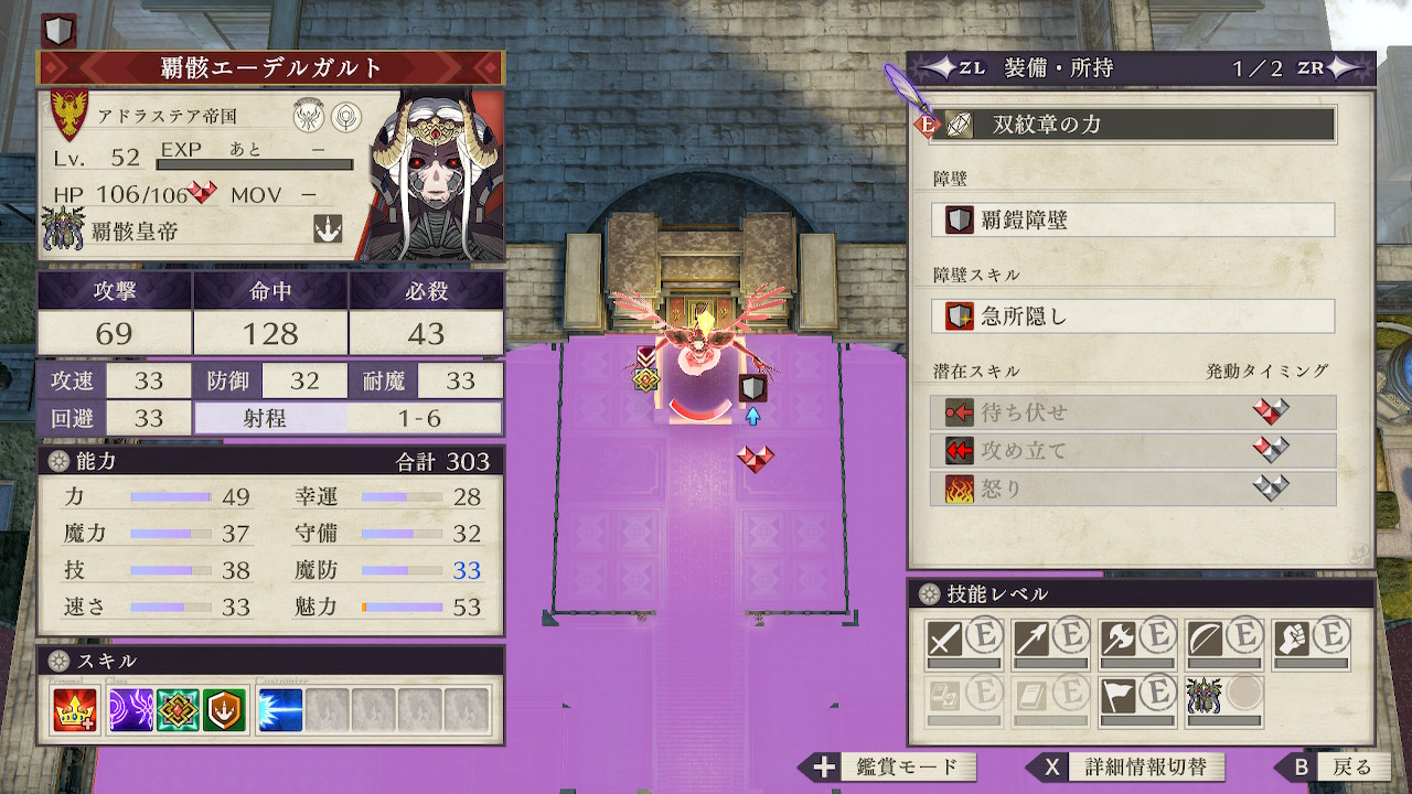 いや、中にはif暗夜ルナ終章のようにもっと酷いマップもあったけど、あれらと違って今作は天刻があるからまだ温情を感じられるだけで、もし他作品と同じ条件で天刻がなかった場合はエーデルガルトの必殺を回避する手だてがないので無理ゲーもいいとこですよ