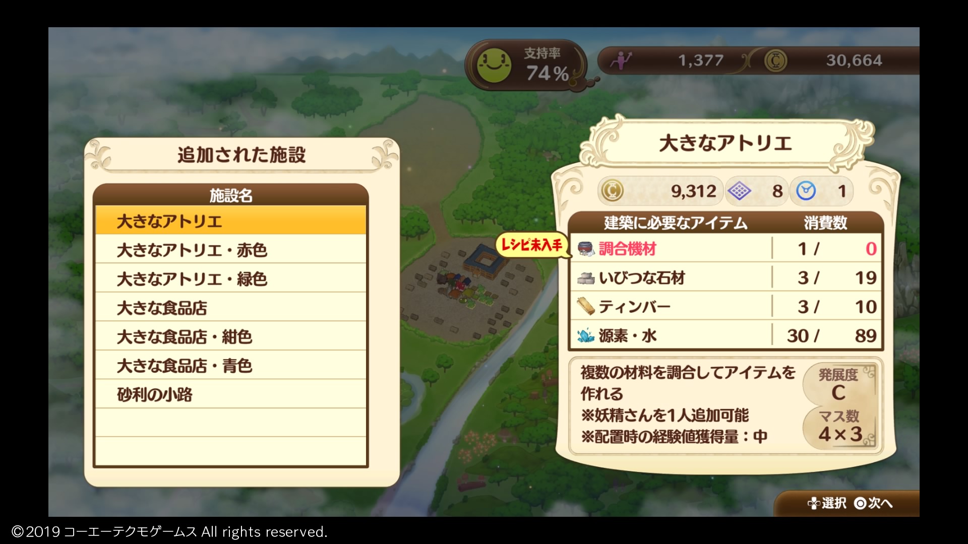 でもここからさらに街が発展してアトリエの数が増えると、全部を手動で管理しきれなくなるかもしれないので、街の中で生産できる材料を使って調合し、それをショップで売るという地産地消のサイクルを組み立ててやる必要があるでしょう