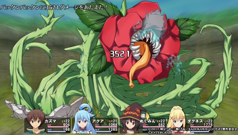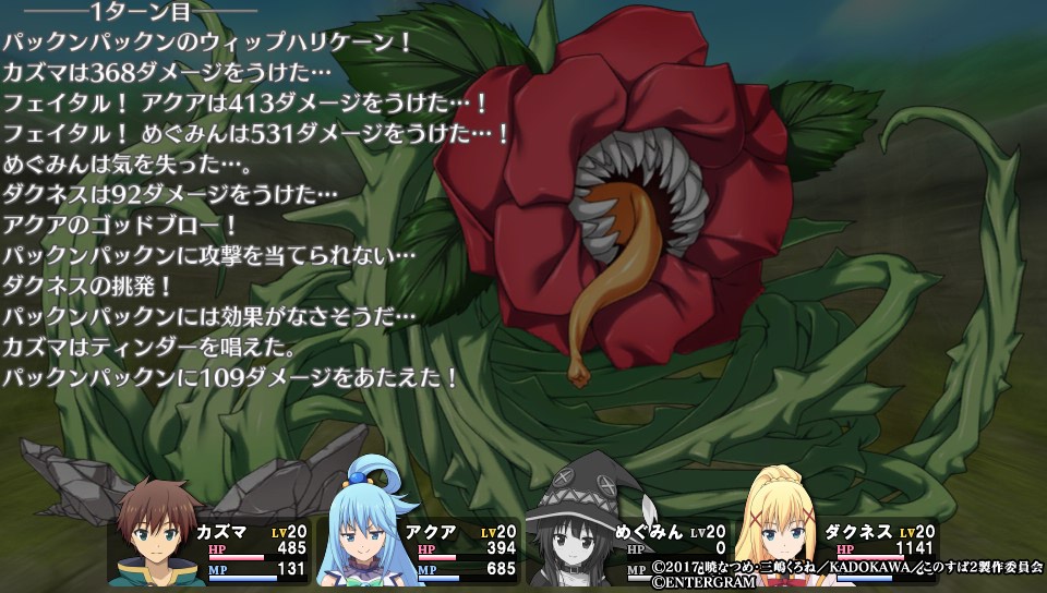 アタッカーがカズマしかいないからほとんどダメージ与えられないし、敵の残りHPが全く分からないため勝てるかどうかの見通しも立てられないから凄く不安になる