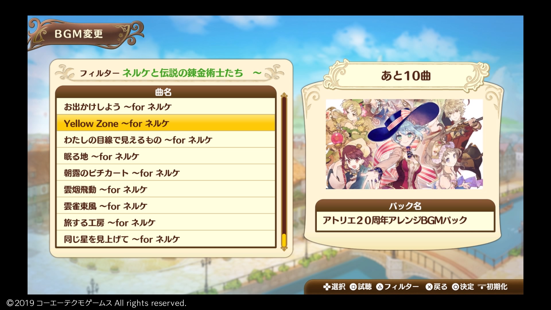 購入したBGMは平日や休日、アトリエ内、戦闘にそれぞれ設定して、クリア前とは違った気分でプレイできるようにしました