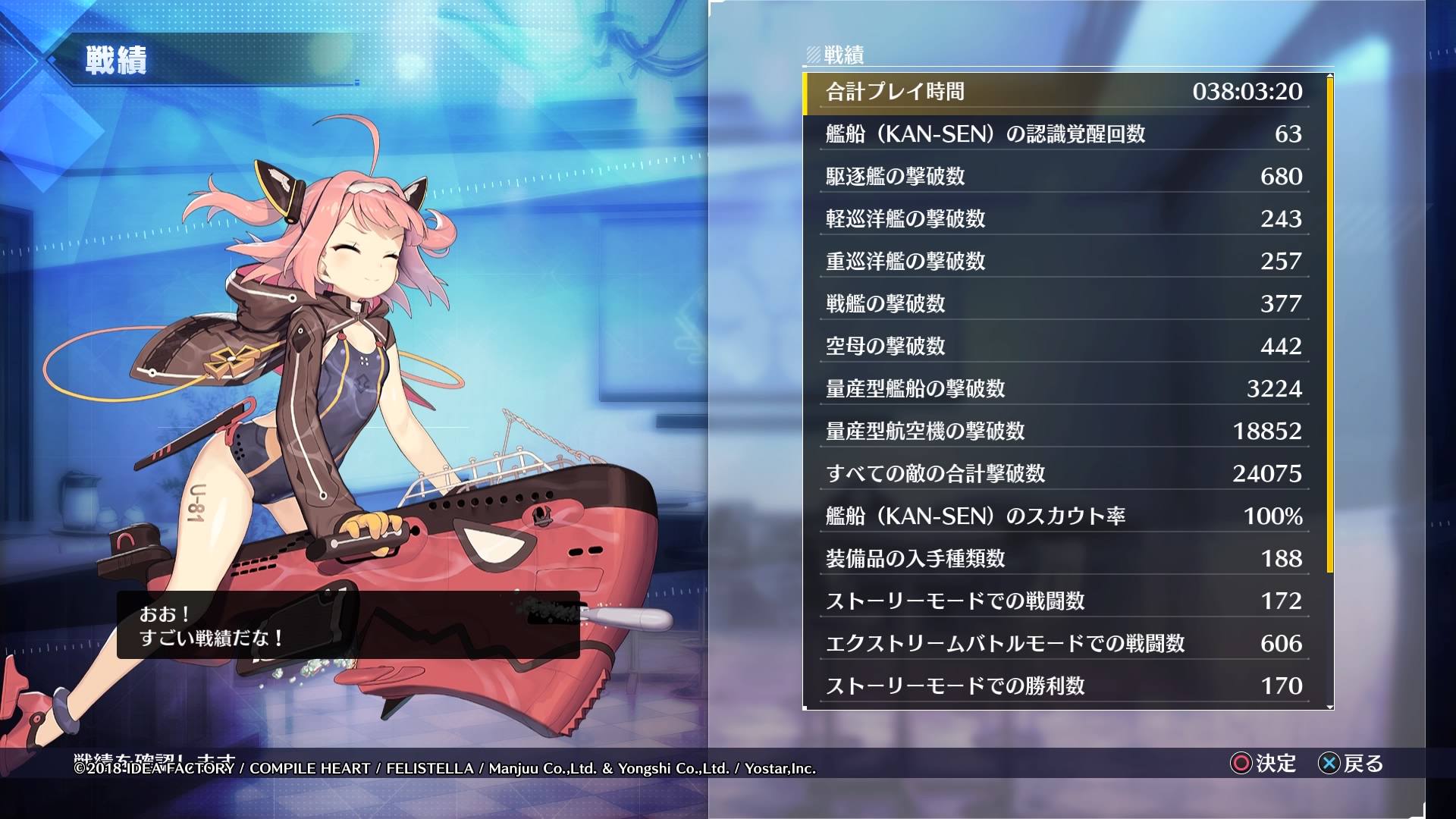 所要時間は38時間 プレイ時間としてはそれほど長くないけど、体感はもっと長かった…実際のプレイ時間は38時間なので時間的にはそれほど長くない、むしろトロコンするのに要した時間としては短い方だけど、休日の時間がある時限定で進めていたのと、同じバトルを延々と10回ずつ繰り返す作業が苦行だった