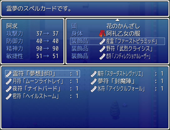 仲間になった阿求は初期レベルが霊夢よりも3つほど高く、MPと精神力が高い