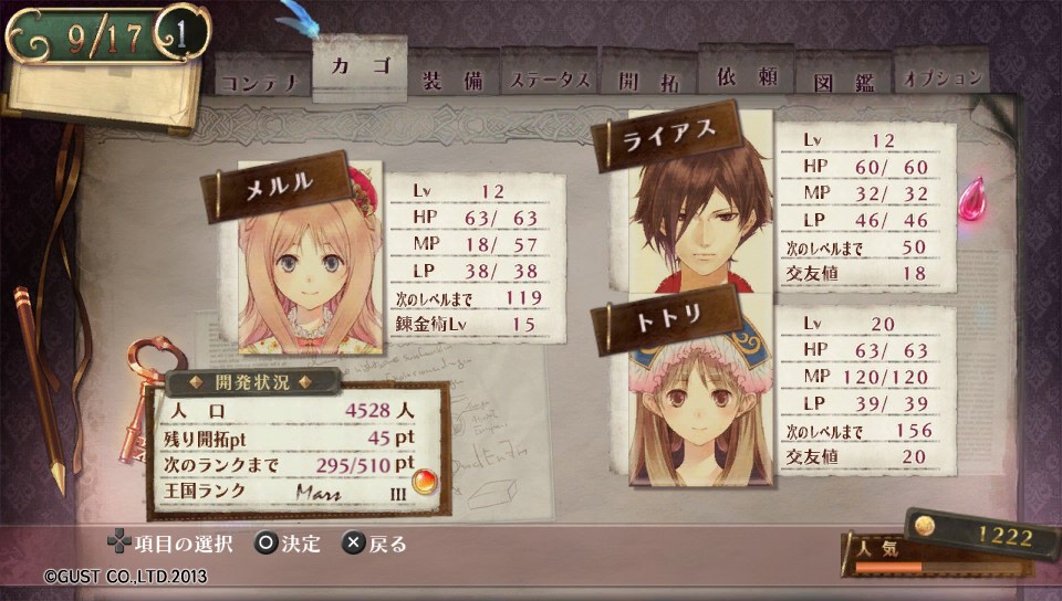 でもその怪我の功名があってトトリがパーティに加入する条件(錬金LVが15になること)がわかったので、最初のプレイとは大きく方針変更して無駄のない進め方(採取地探索する前にトトリ加入)をしました