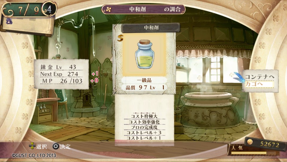 今後はこの中和剤を使って調合することで、できたアイテムをさらに別のアイテムの素材に使うことでほとんどのアイテムのコストを上げることが可能に!